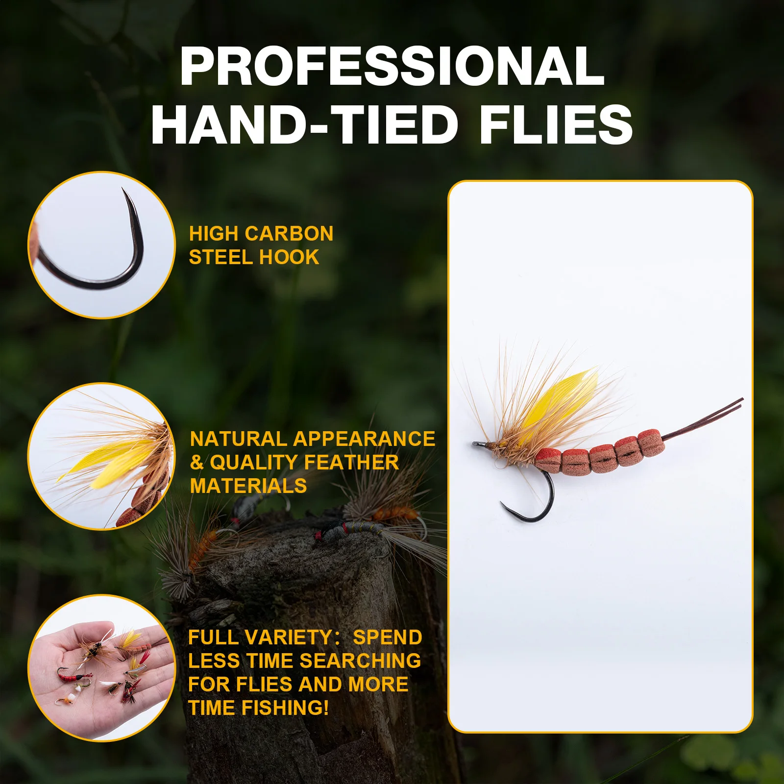 Goture-Juego de Señuelos de Pesca con moscas de insectos, anzuelo de acero rico en carbono, mariquita, mosca seca, serpentina de pesca, atado, cebos artificiales