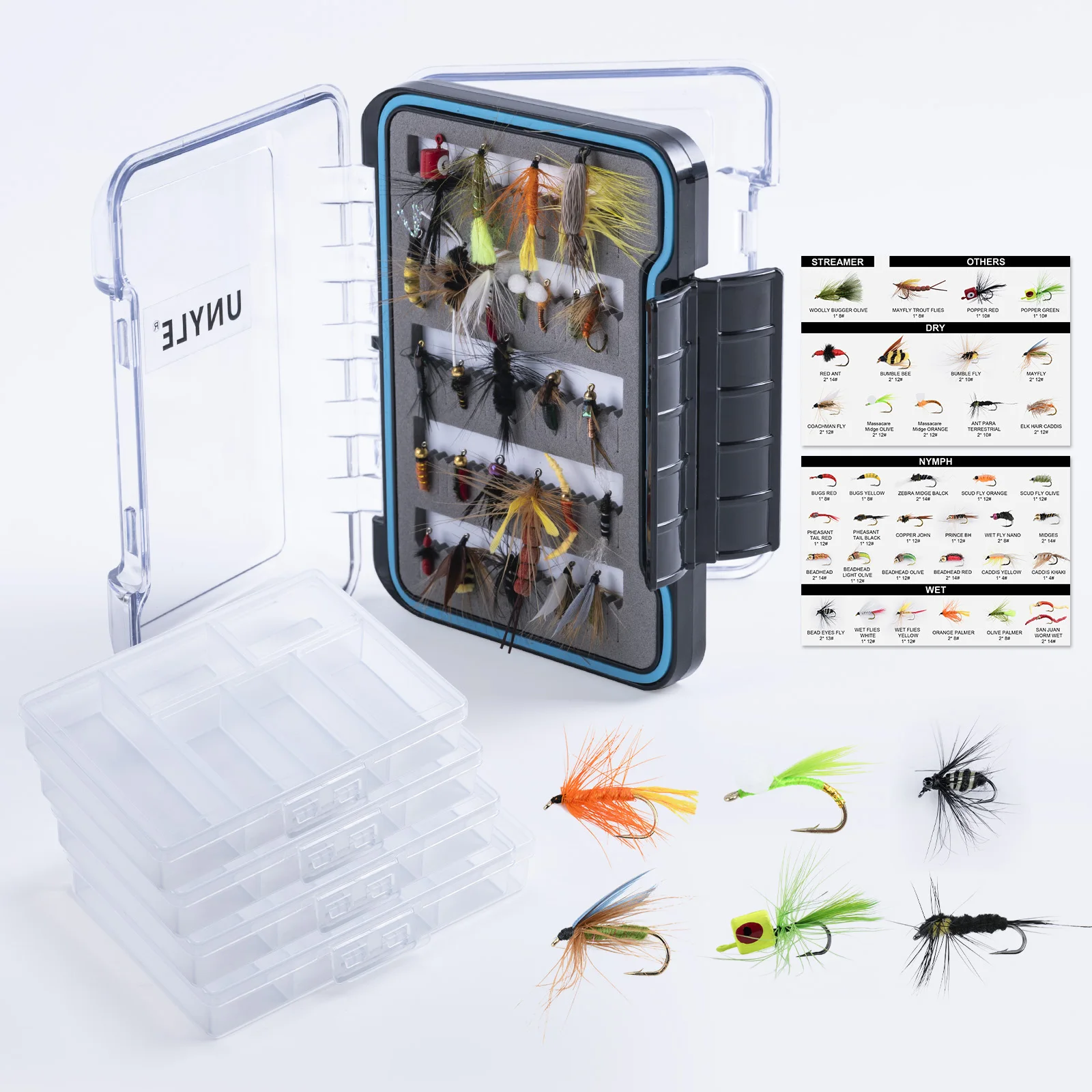 Goture-Juego de Señuelos de Pesca con moscas de insectos, anzuelo de acero rico en carbono, mariquita, mosca seca, serpentina de pesca, atado, cebos artificiales