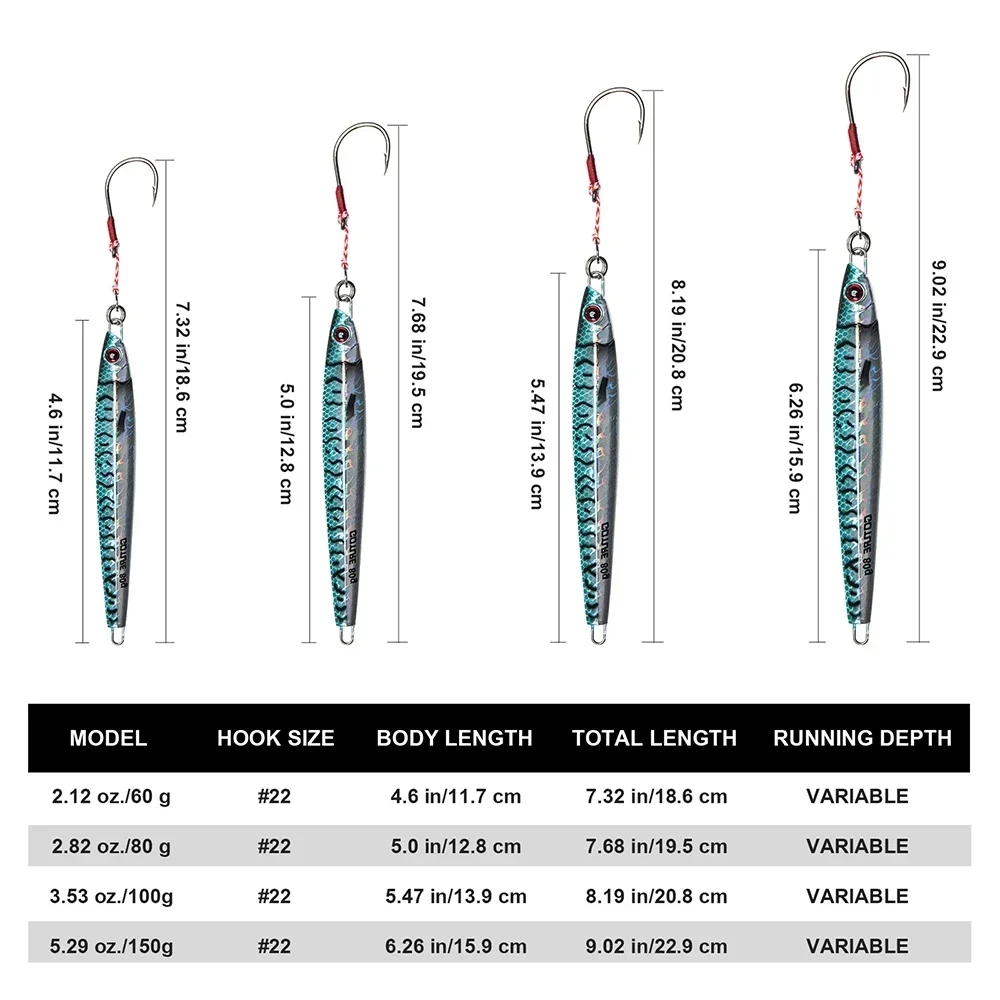 Goture Deep Sea Luminous Metal Jig Fishing Jigbait 60g 80g 100g 150g Spoon Baits Jig Lure Pencil Fast Sinking Fishing Tackle