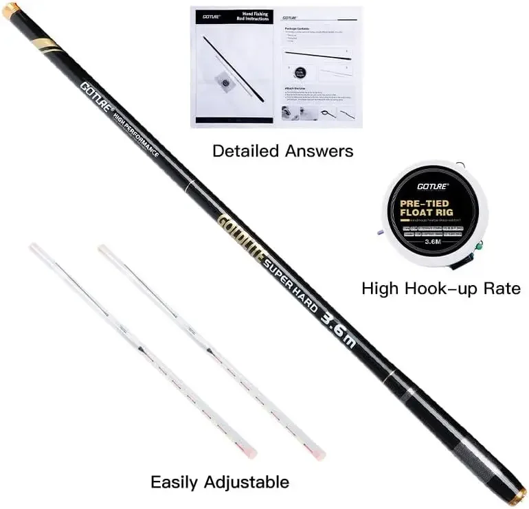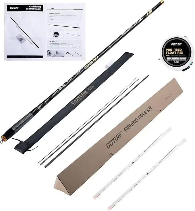 Goture-Kit de caña de pescar GOLDLITE, caña telescópica portátil de fibra de carbono de 3,6 m-7,2 m con 3 puntas superiores, flotador de línea para pesca en corriente