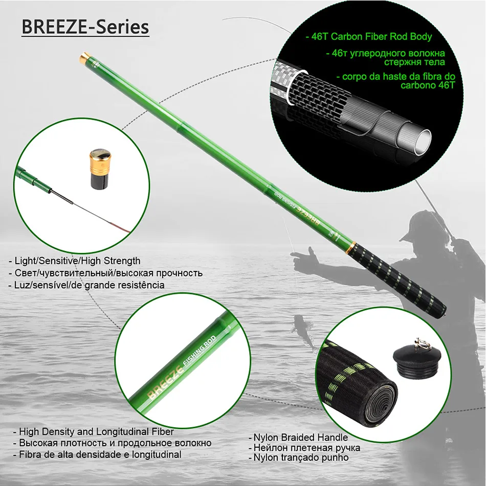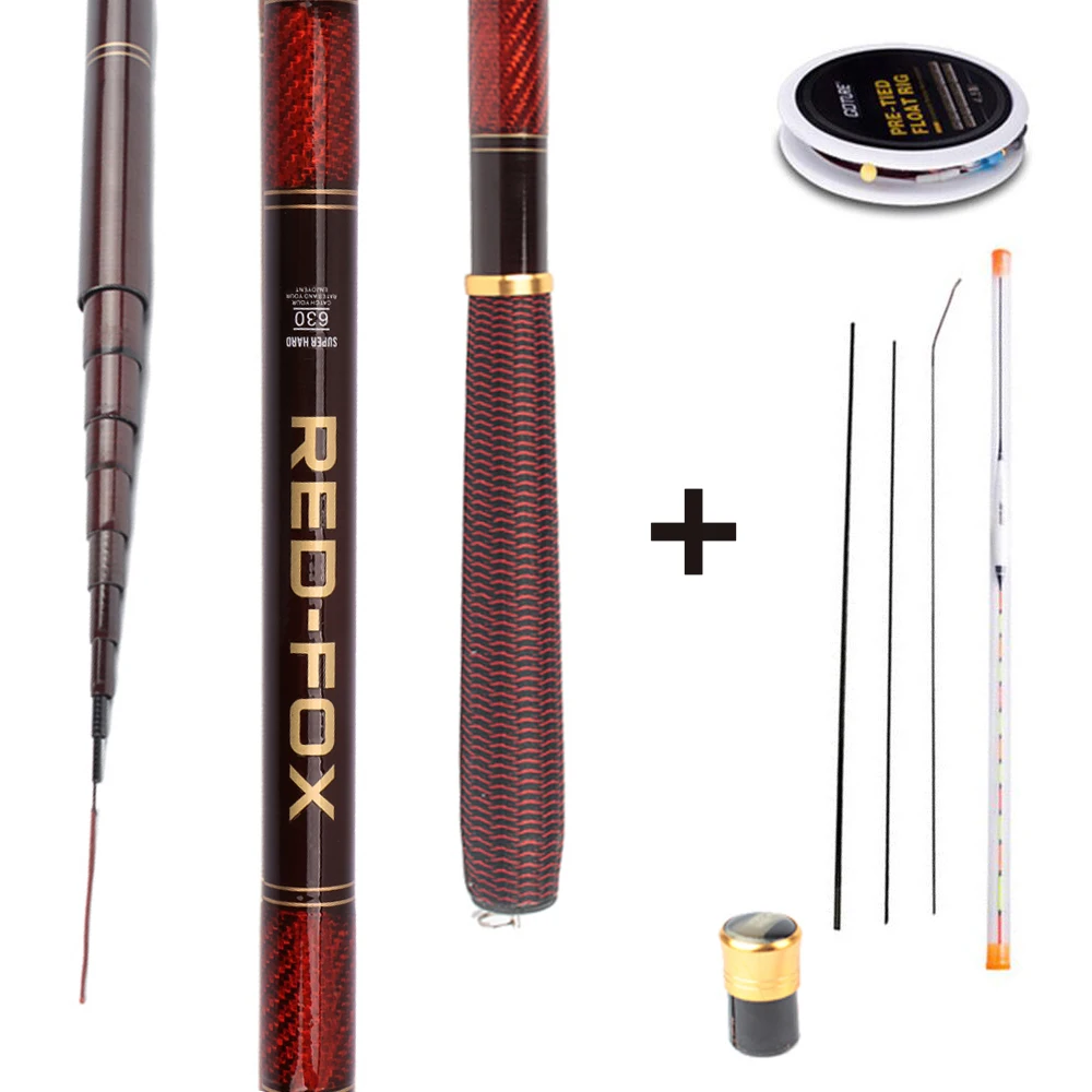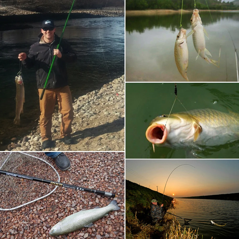 Goture Kit de caña de pescar telescópica de fibra de carbono, caña Tenkara de 3-7,2 m con puntas de repuesto, con juego de aparejos flotantes, caña de mano de agua dulce