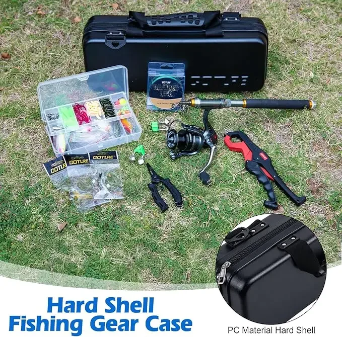 Goture-Kit completo combinado de caña de pescar, 1,8 m, 2,1 m, 2,4 m, 2,7 m, carretes giratorios, flotador, señuelos, gancho, accesorios de controlador de línea