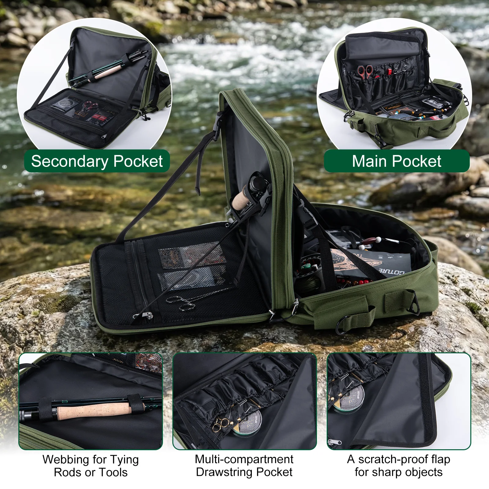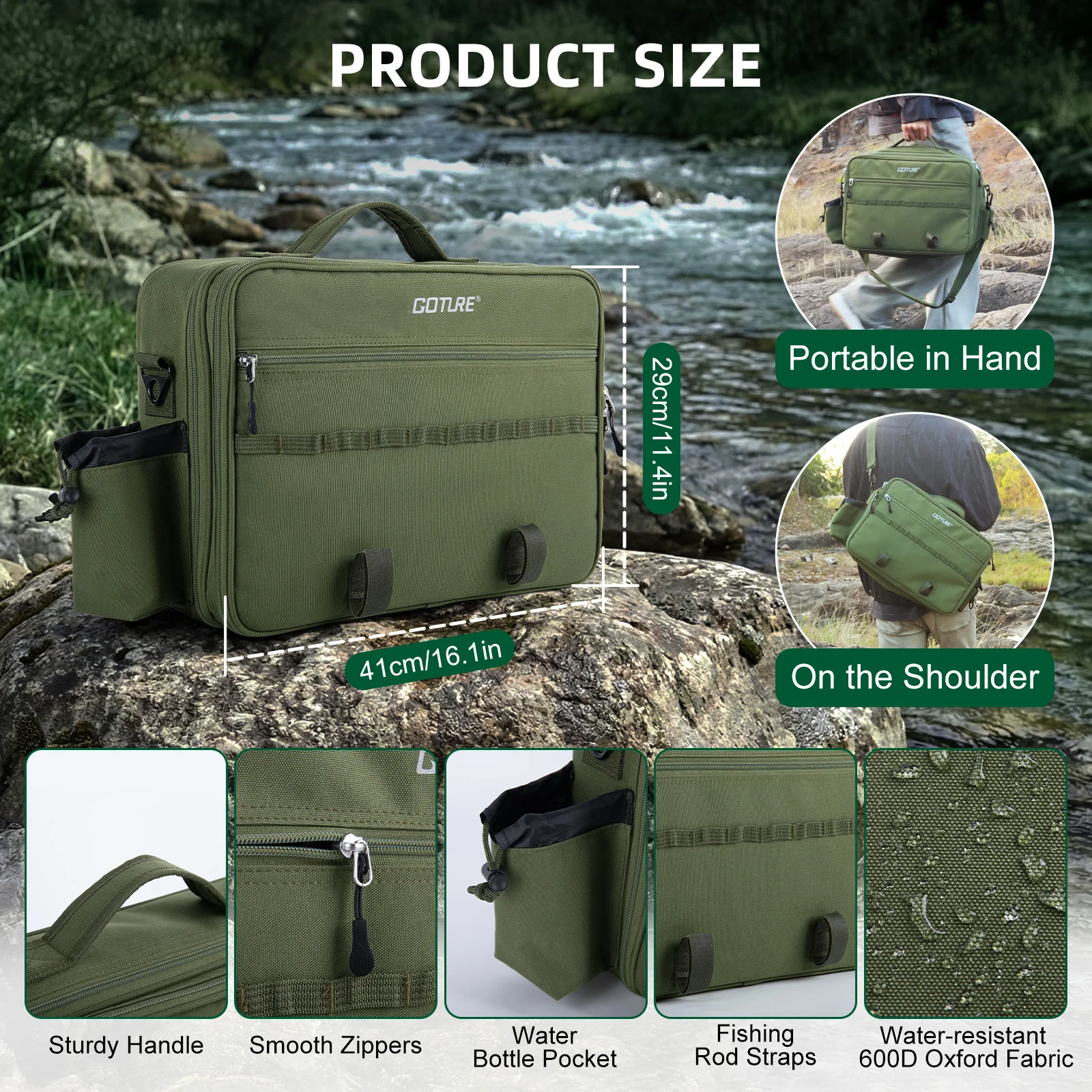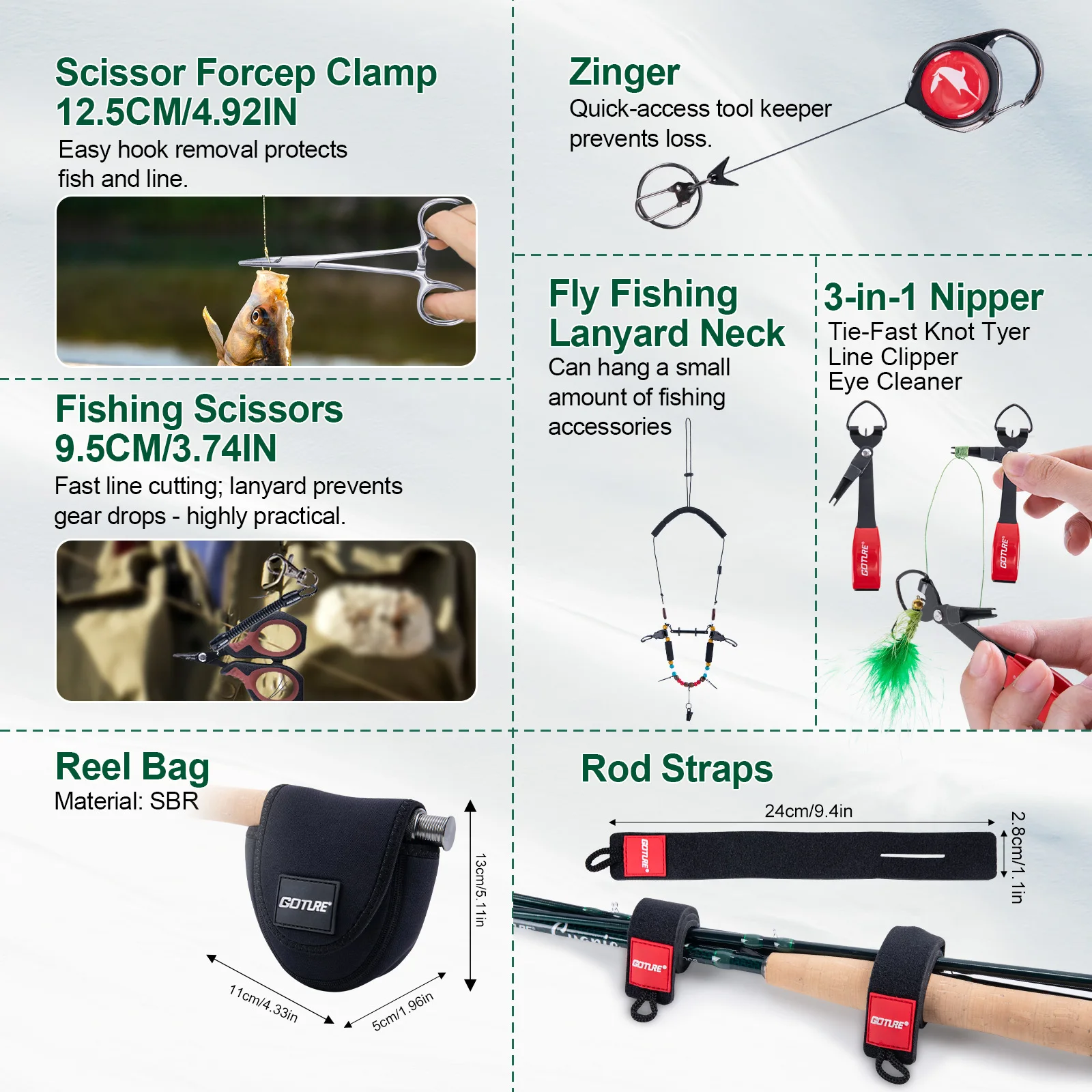 GOTURE Kit completo de equipo de pesca con mosca, caña de carbono profesional + carrete + aparejos completos + bolsa portátil, ligero, fácil de llevar