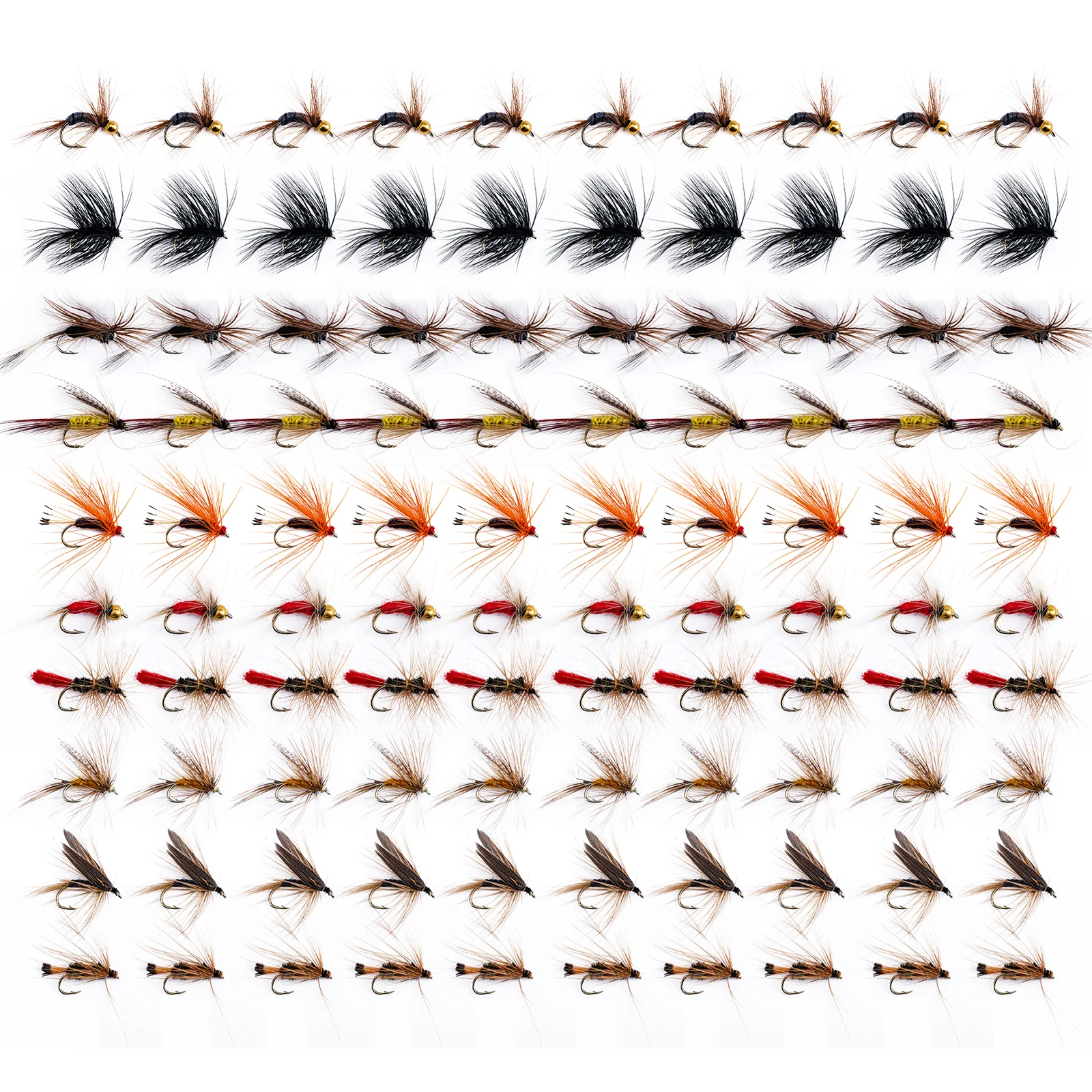 Goture-Kit de moscas de pesca con mosca, 100 piezas, trucha, salmón, moscas secas, moscas húmedas, serpentinas, señuelos de pesca con mosca de ninfas