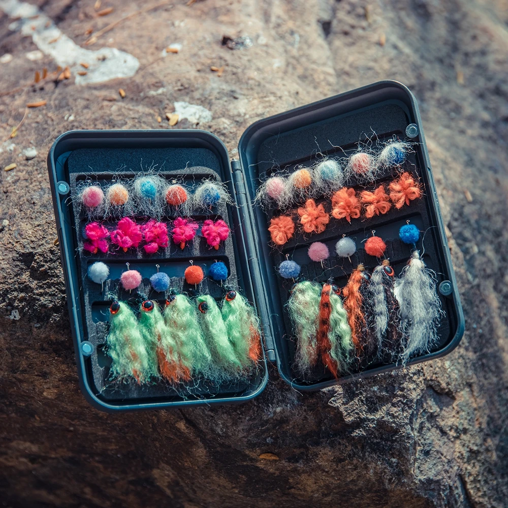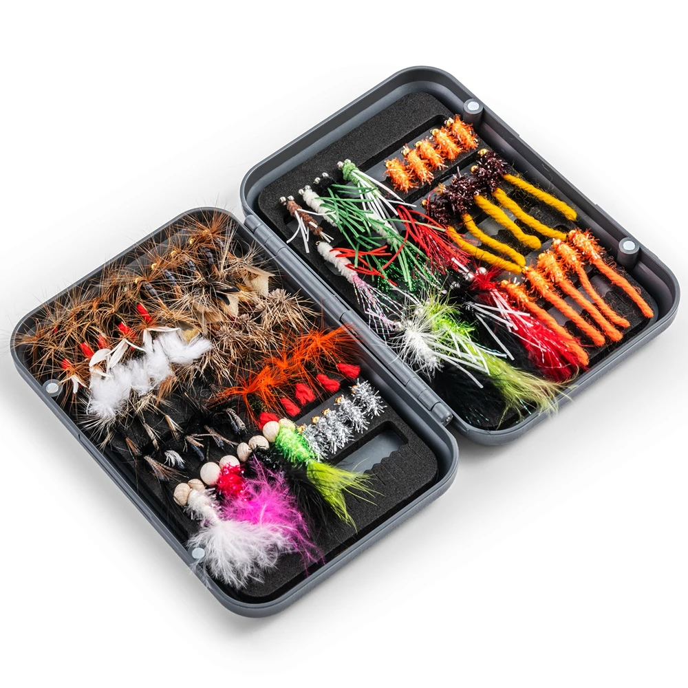 Goture-Kit de señuelo para pesca con mosca, cebo para moscas húmedas y secas con anzuelo de manivela súper afilado, señuelo perfecto