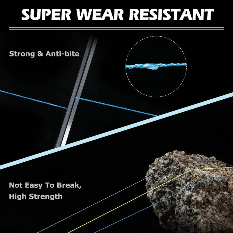 Alambre trenzado 4X, hay un tejido increíblemente fuerte que es resistente y perfecto para pescar alrededor de estructuras duras.