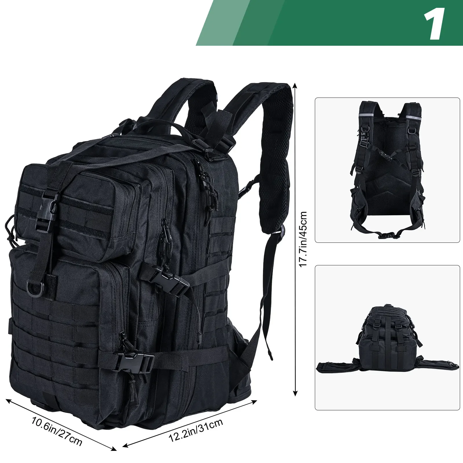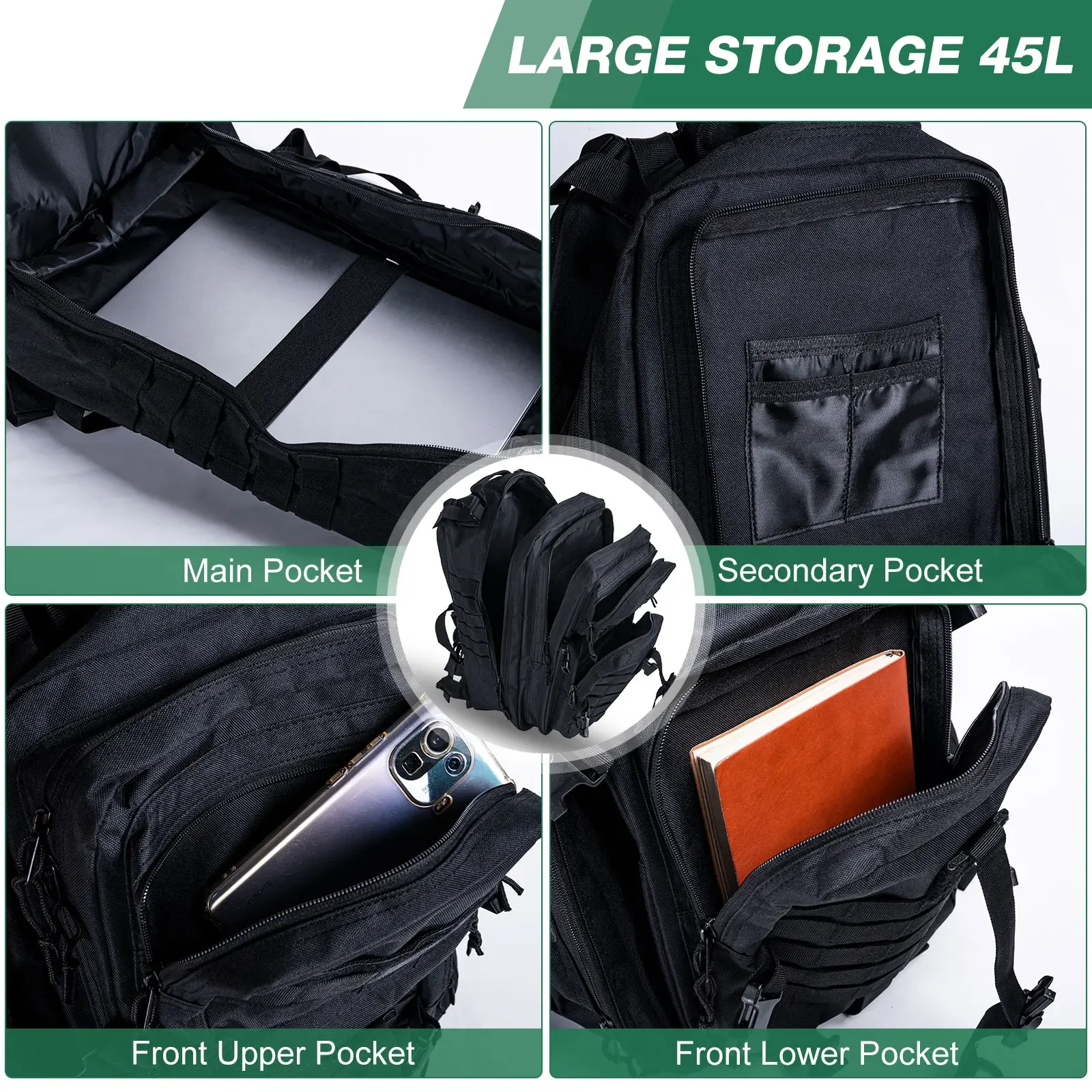 Goture Mochila multifunción BL099 Bolsa de almacenamiento de aparejos de pesca negra de 45L Caja de señuelos Gear Mochila de pesca con mosca Bolsa de Camping al aire libre