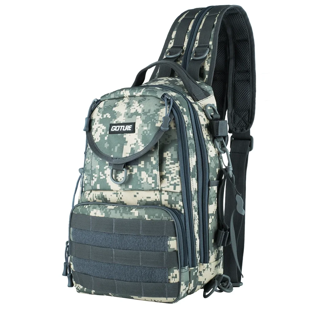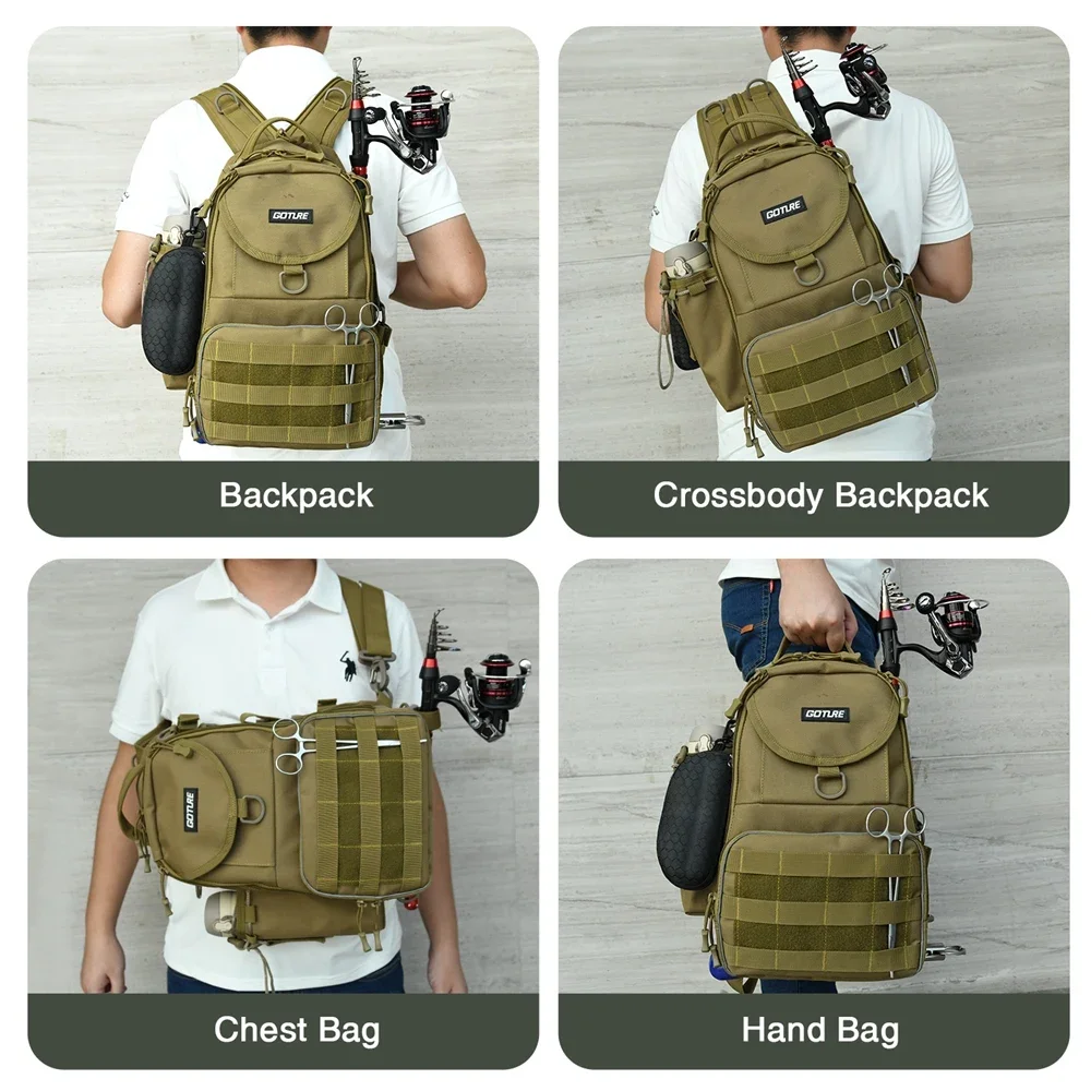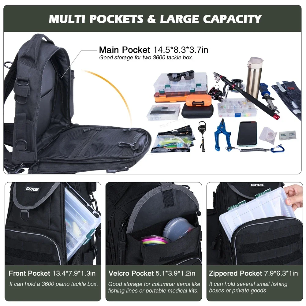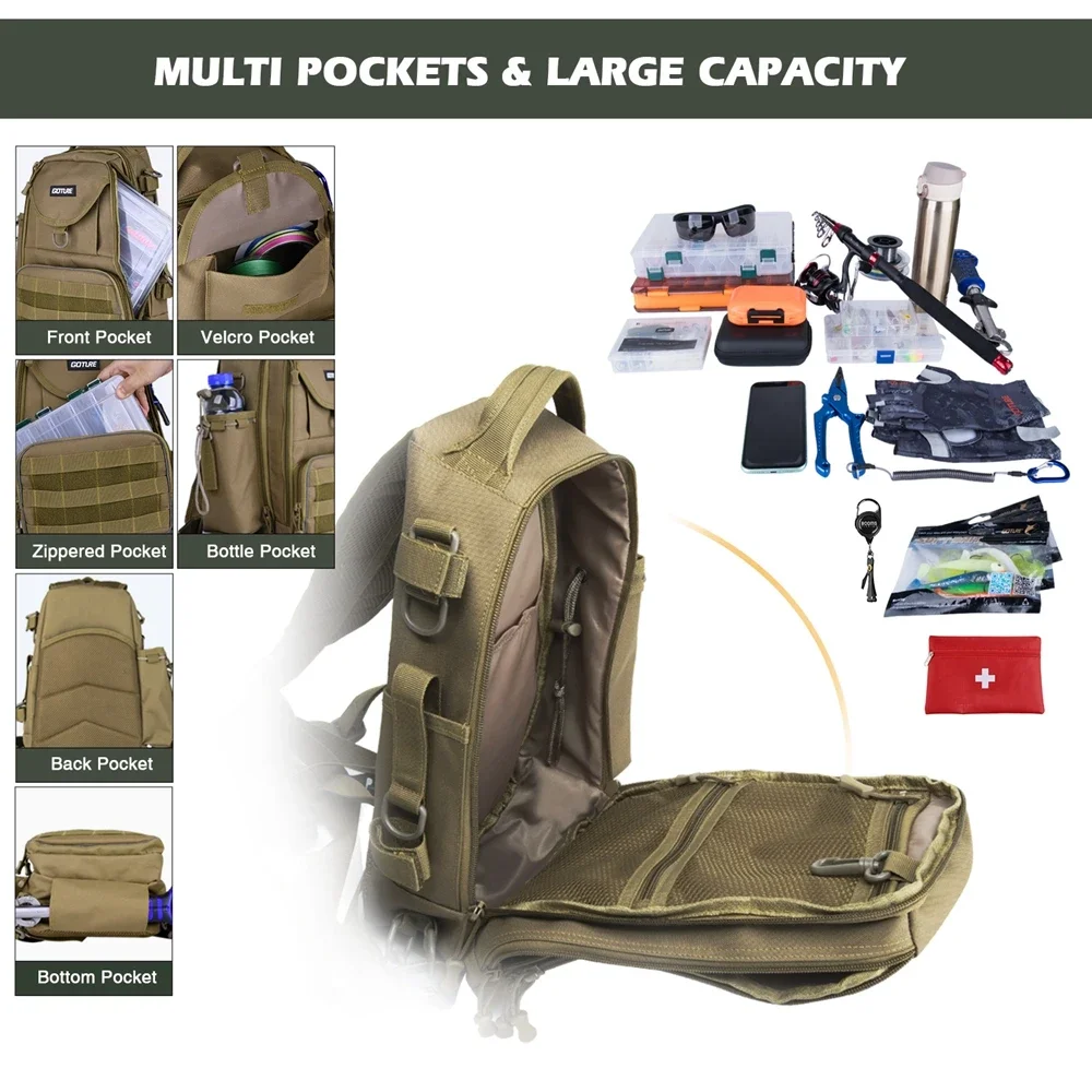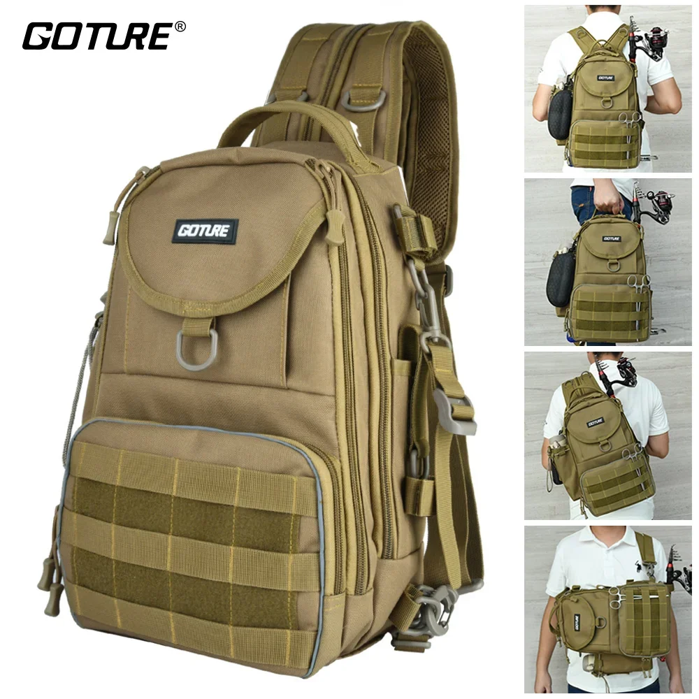 Mochila de pesca con múltiples bolsillos Goture, bolsa de aparejos de señuelo, bolsa de nailon para exteriores, impermeable, hombro, mano, pecho, Camping, senderismo
