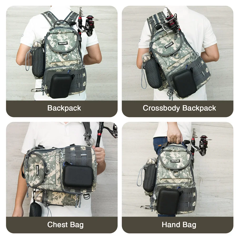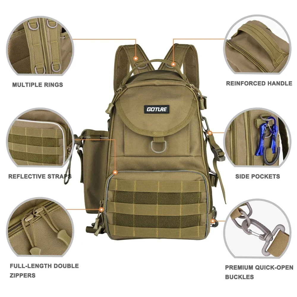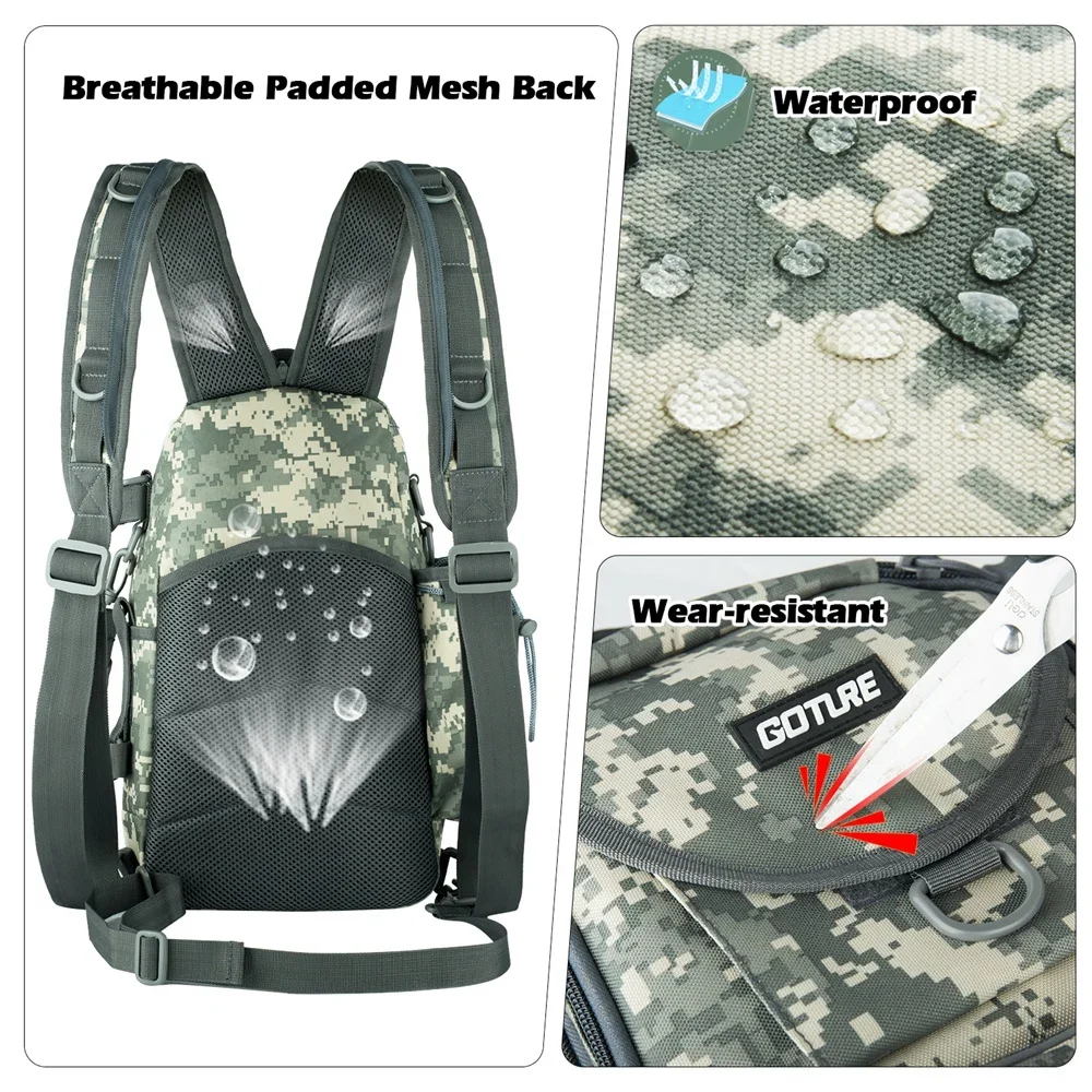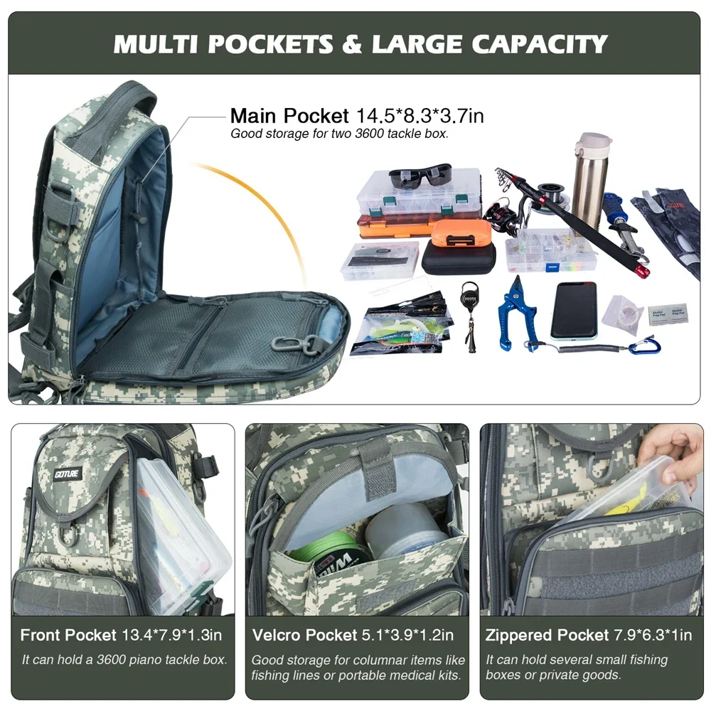 Mochila de pesca con múltiples bolsillos Goture, bolsa de aparejos de señuelo, bolsa de nailon para exteriores, impermeable, hombro, mano, pecho, Camping, senderismo
