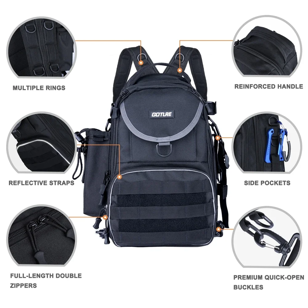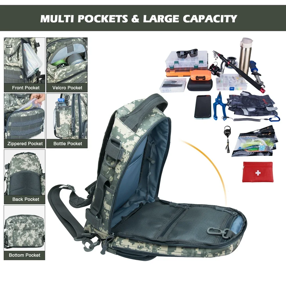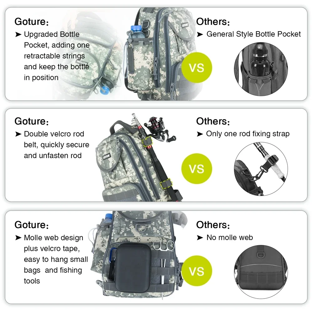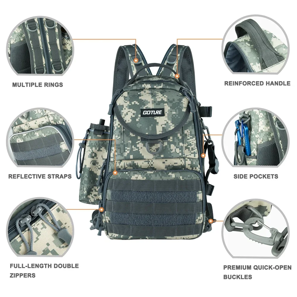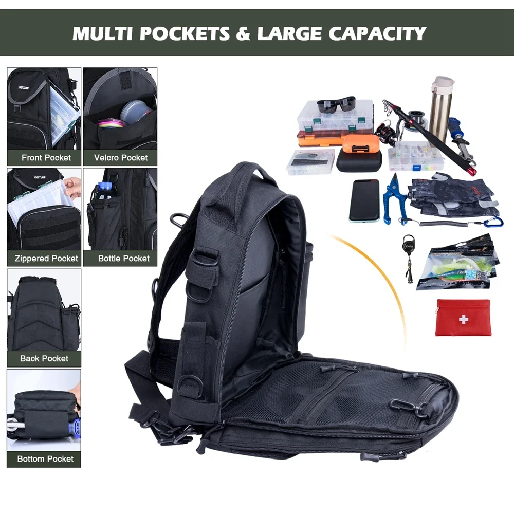 Mochila de pesca con múltiples bolsillos Goture, bolsa de aparejos de señuelo, bolsa de nailon para exteriores, impermeable, hombro, mano, pecho, Camping, senderismo