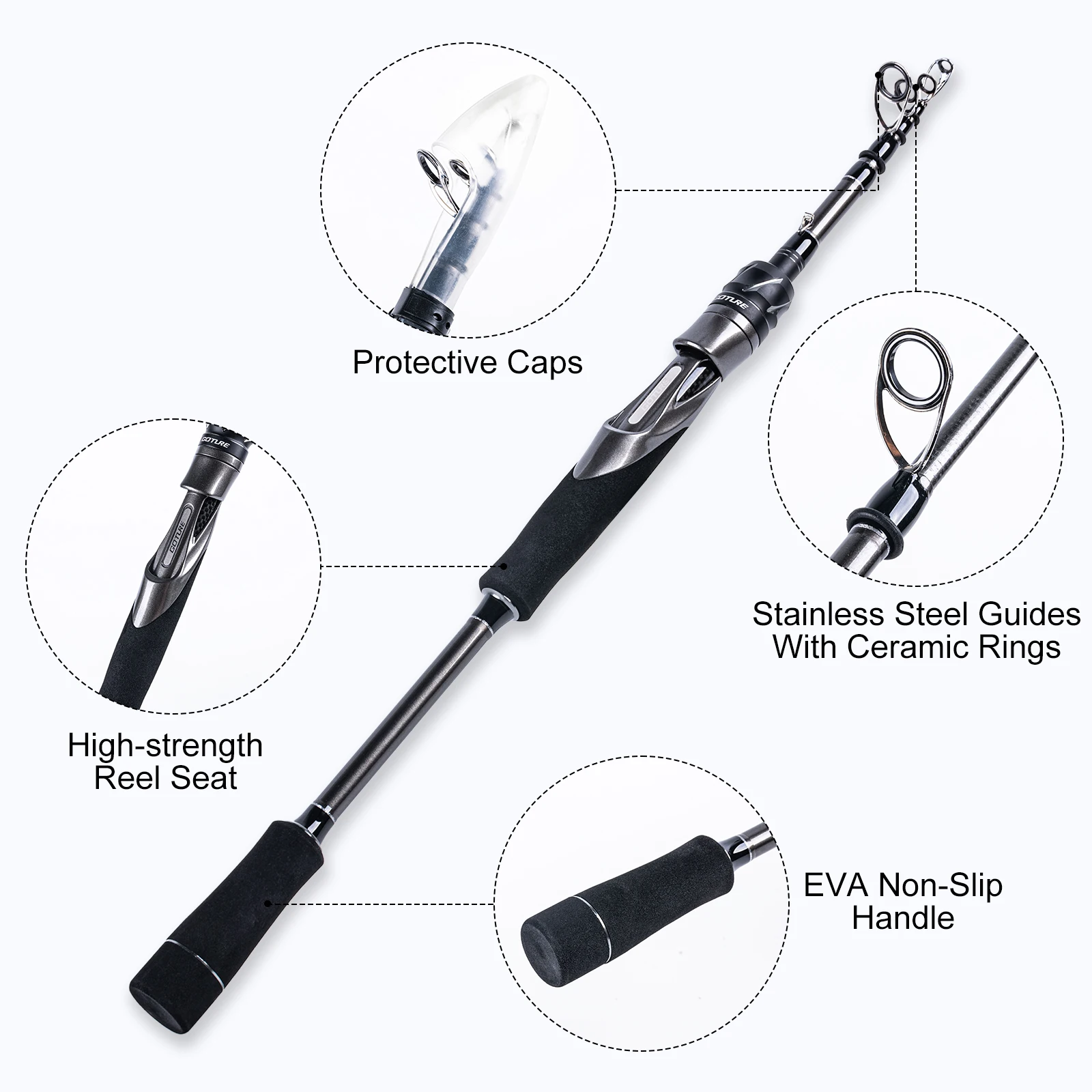 1,8 M ---- Longitud: 180cm/Longitud cerrada: 50cm/Sección: 5/Peso: 103g/Peso del señuelo: 7-20g