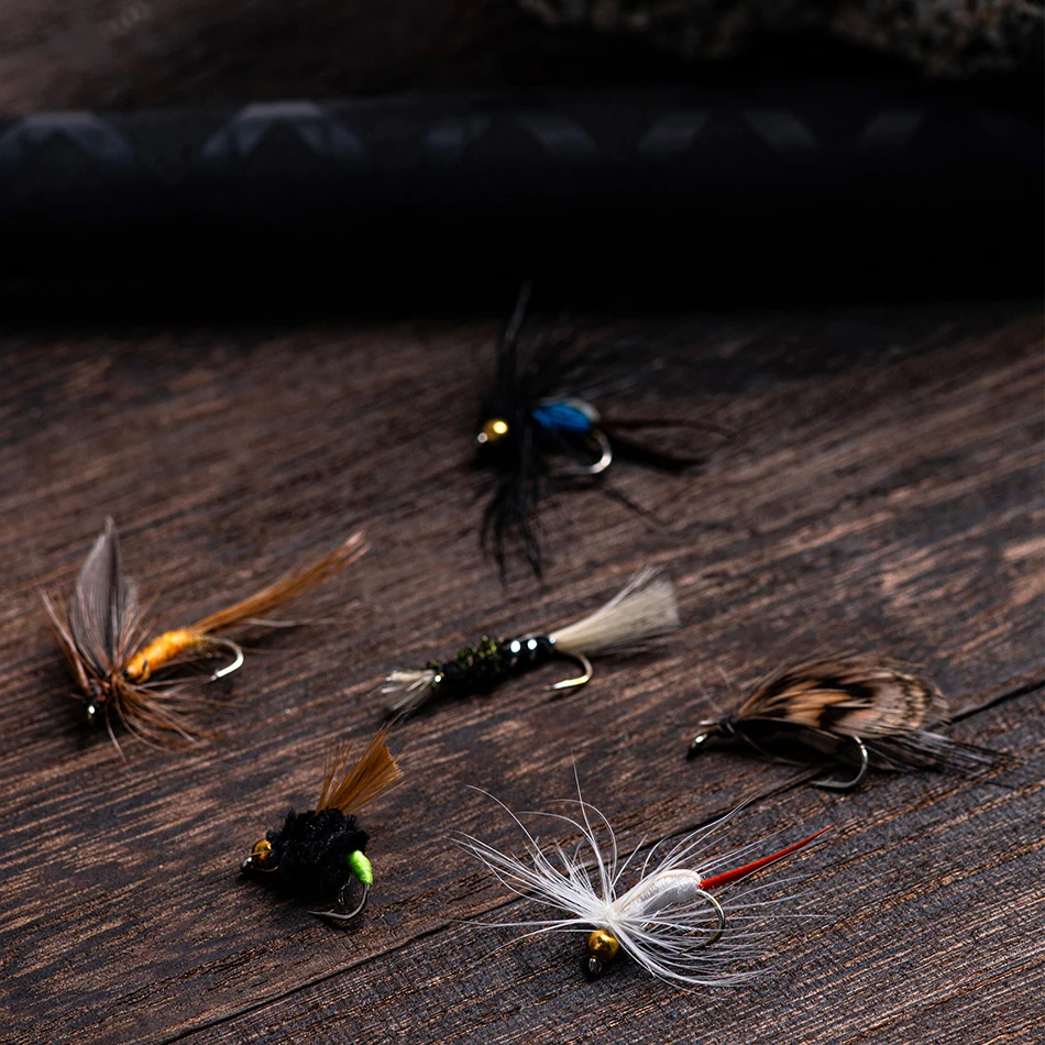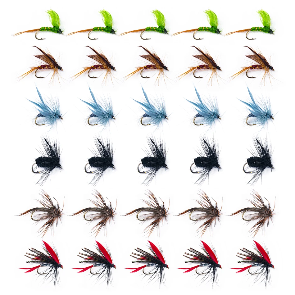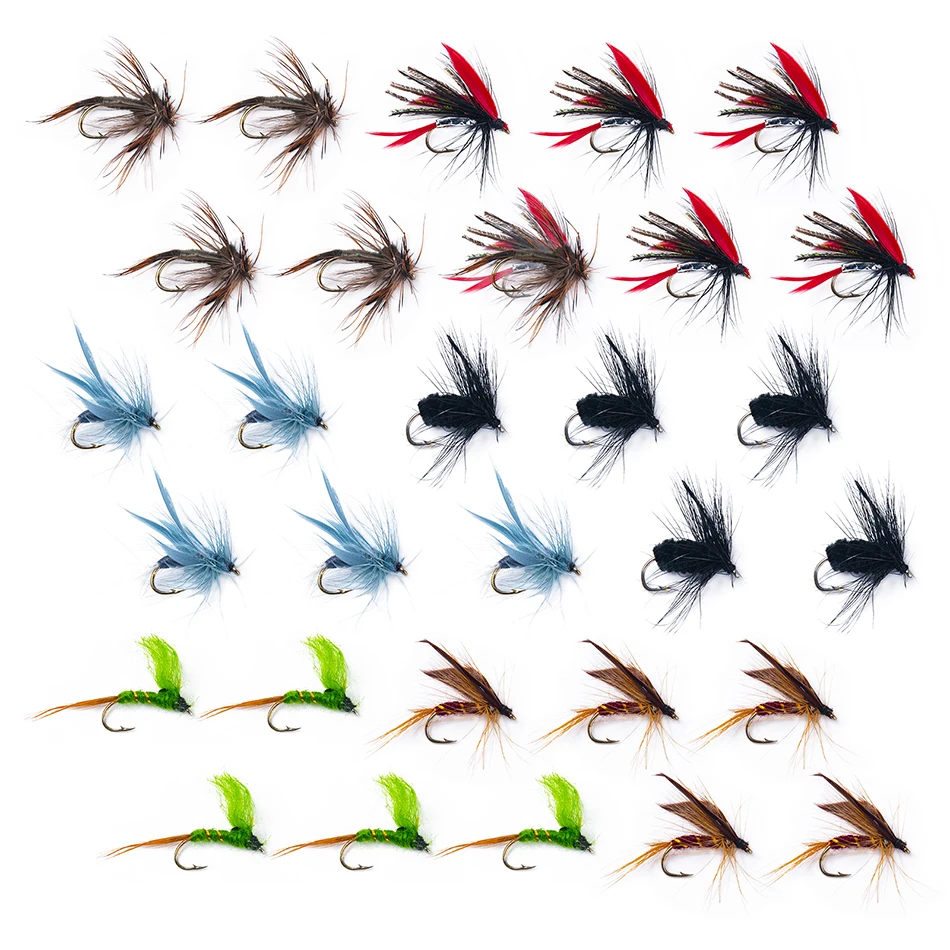 Goture-Nuevo señuelo de pesca con mosca, cebo de trucha, Kit de moscas, Serpentina húmeda y seca, moscas de Ninfa, lubina Artificial, atado de moscas, 30 Uds. Por lote