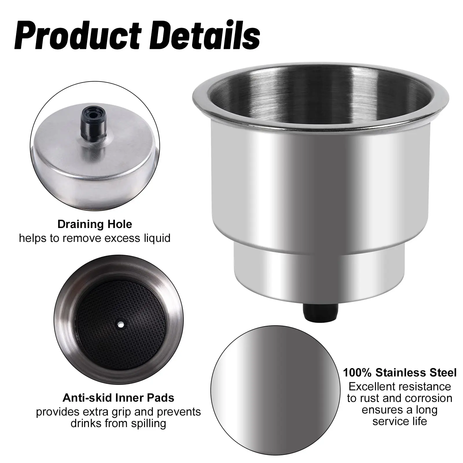 Portavasos Goture para yate, portavasos de acero inoxidable pulido a prueba de herrumbre, con drenaje, accesorios para barco, coche para caravana