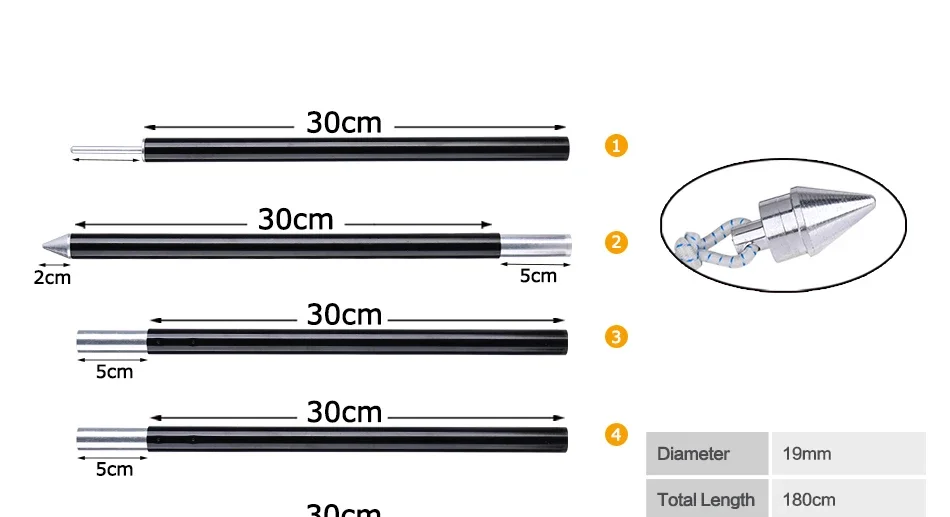 2 piezas * varilla de tienda de campaña; (1 unidad, 6 secciones)