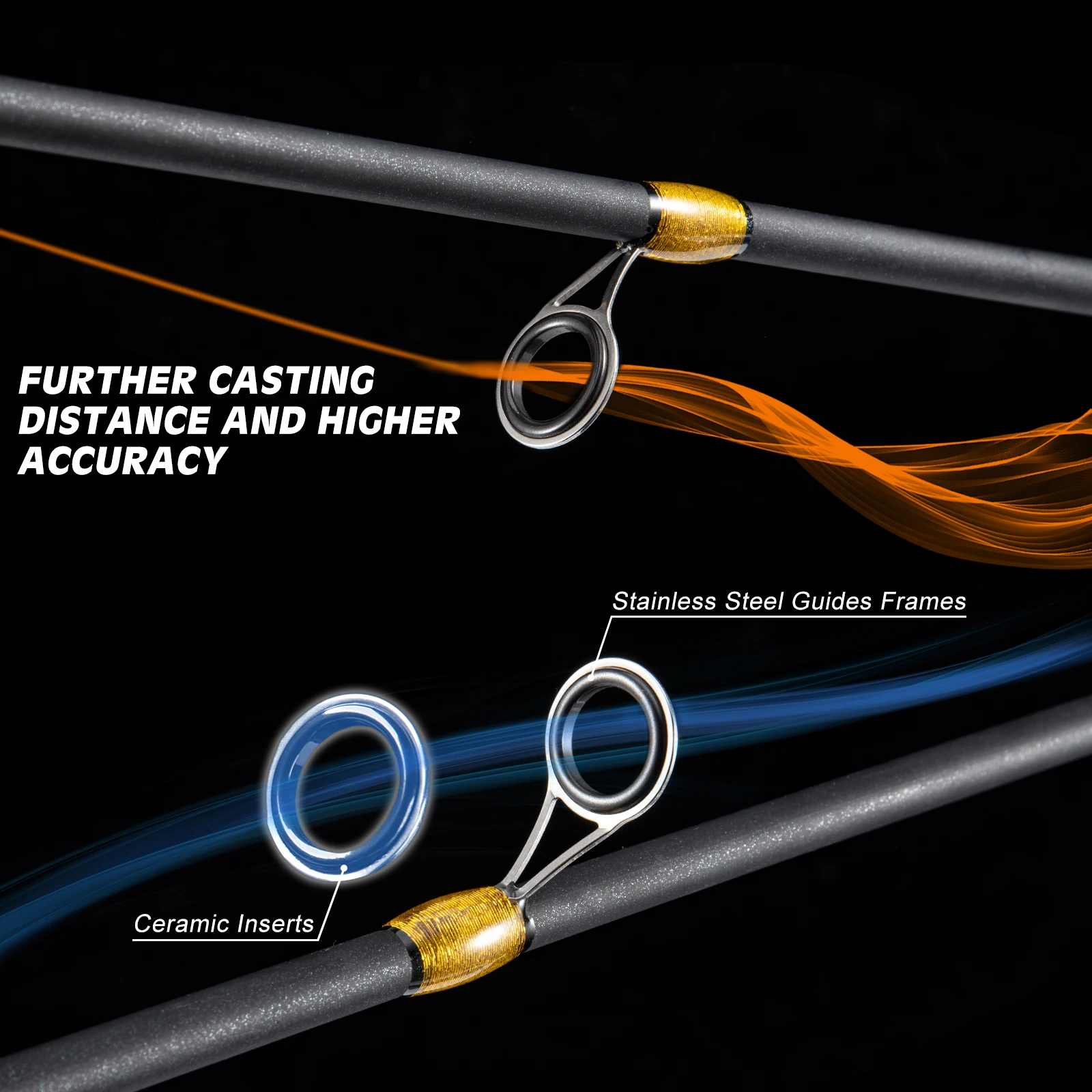 La Construcción de virola de espiga compacta, la transición de potencia suave en todo el espacio en blanco permite que nuestras varillas de dos piezas tengan la misma sensación y potencia que las varillas de 1 pieza
