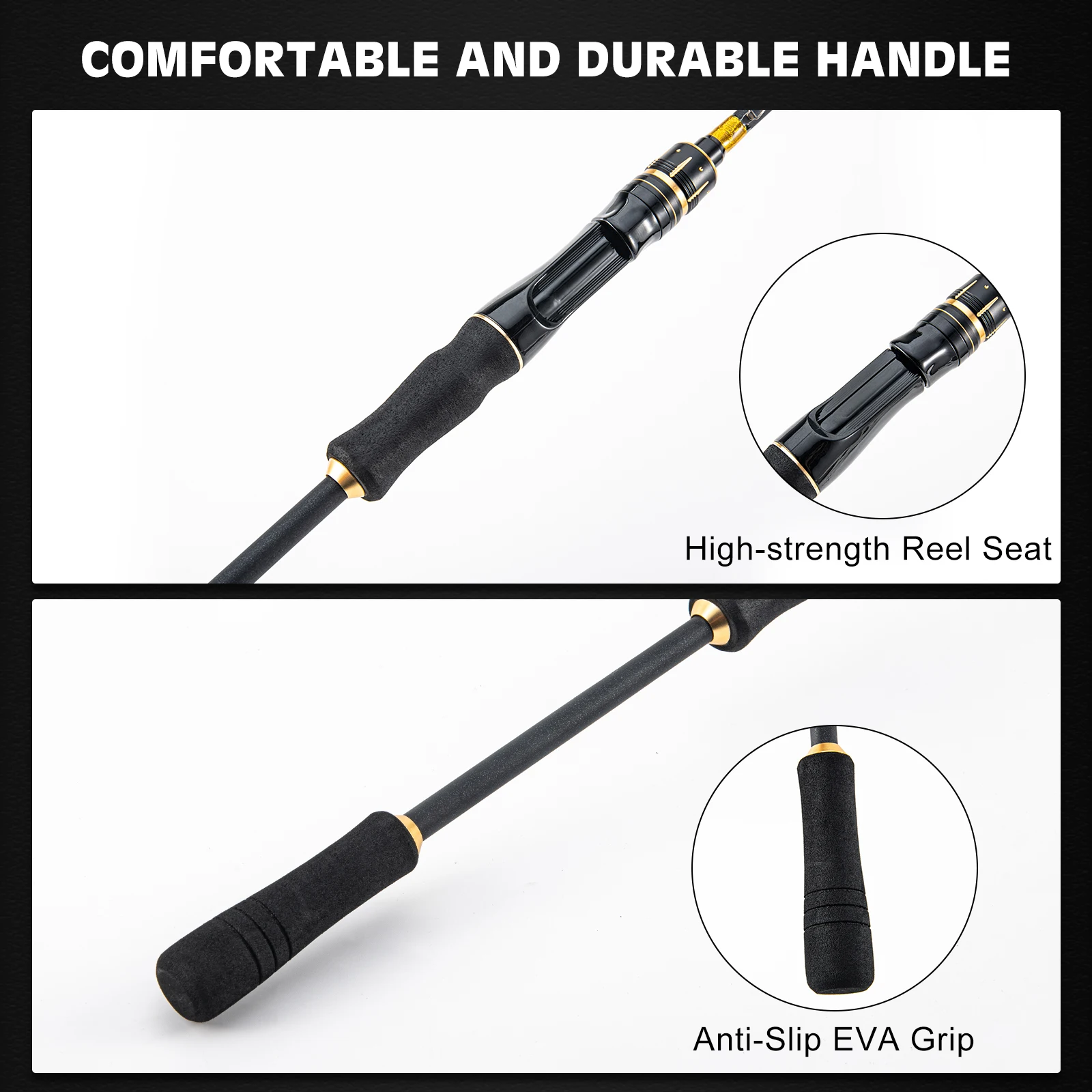 Ligero, duradero y mantendrá los carretes firmemente en su lugar incluso bajo una fuerte presión. Los mangos de EVA antideslizantes funcionan igual de bien en condiciones secas o húmedas y brindan comodidad y durabilidad durante todo el día.