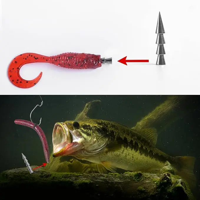 Presentación del señuelo mejorada: al agregar estos plomados de uñas de pesca al extremo de la cola de su cebo blando, puede lograr un descenso vertical, permitiendo que su señuelo penetre profundamente en el pasto anguila y otras vegetaciones en lugar de recostarse sobre el fondo.Esto da como resultado una presentación más natural y atractiva para los peces.