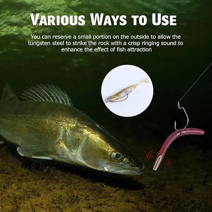 【Adición de peso perfecta】Nuestros pesos de tungsteno para clavos son la opción ideal para mejorar sus Neko Rigging, Texas Rigs o Wacky Rigged Wacky Worms.Estos pesos para uñas añaden la cantidad perfecta de equilibrio y peso a tus cebos blandos.