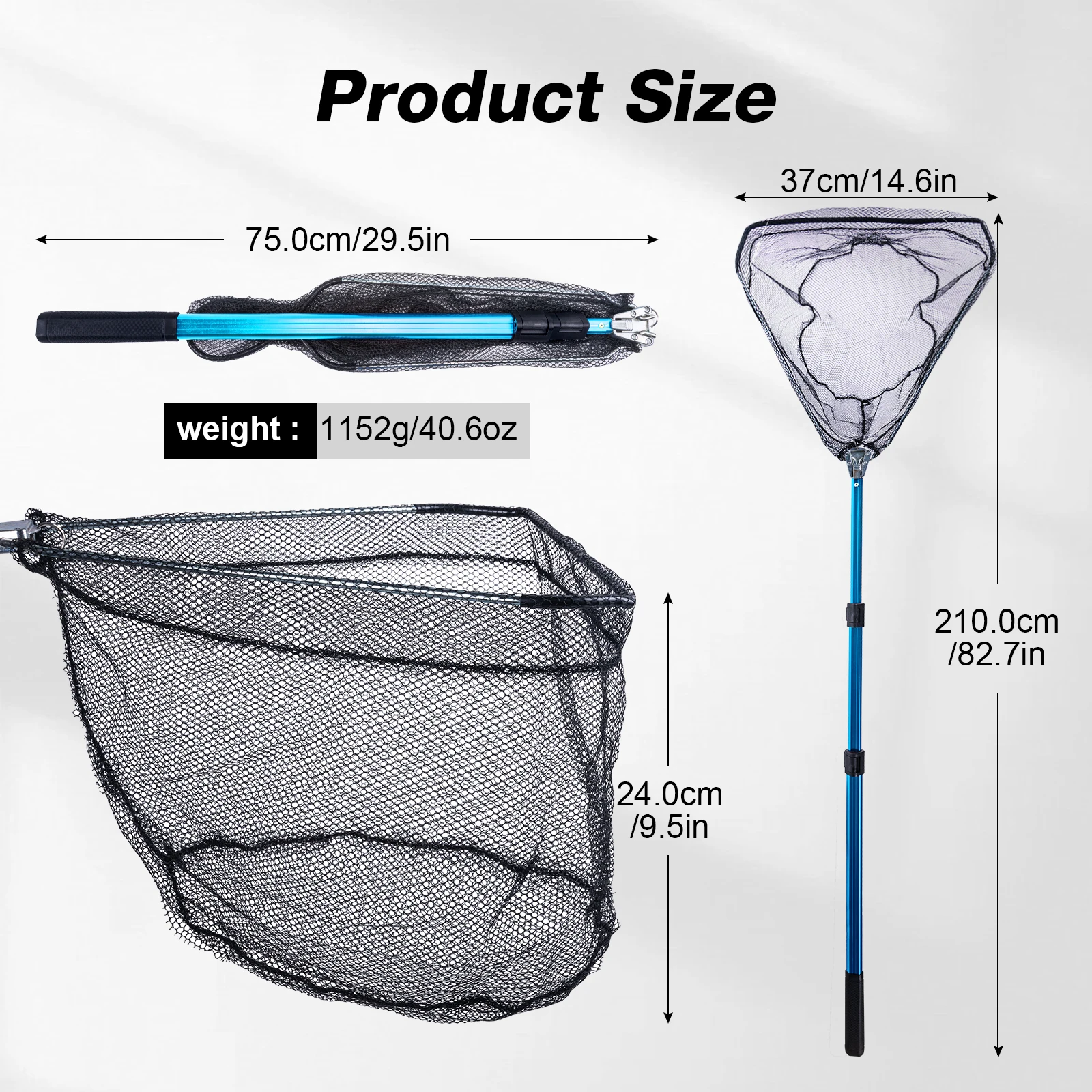 Goture-red de pesca con mosca de aleación de aluminio, 1,8 m, 2,1 m, red Triangular grande, telescópica, plegable, accesorios de pesca