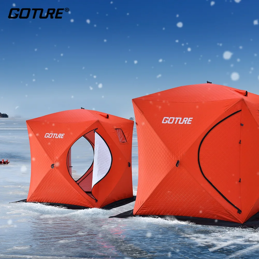 Goture refugio de pesca en hielo portátil 3-4 personas tienda de campaña de invierno de apertura rápida impermeable a prueba de viento al aire libre tienda de algodón calienteMás detalles sobre los refugios de pesca en hielo:
