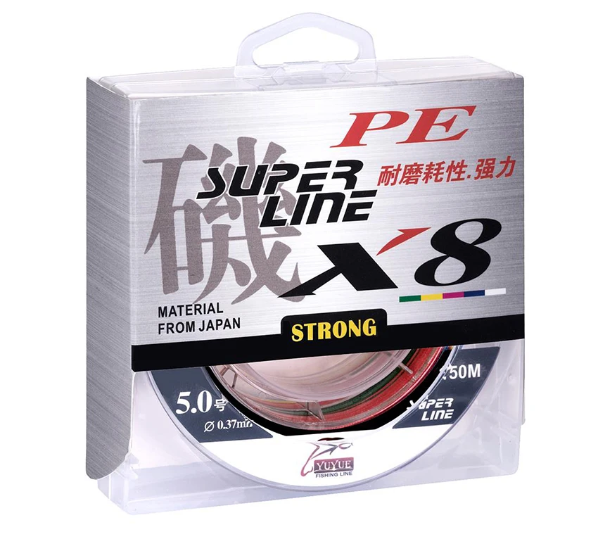 Construcción única de 8 trenzas, hecha de fibras de PE de ultra alta resistencia para aumentar la potencia de arrastre y la resistencia a la abrasión;