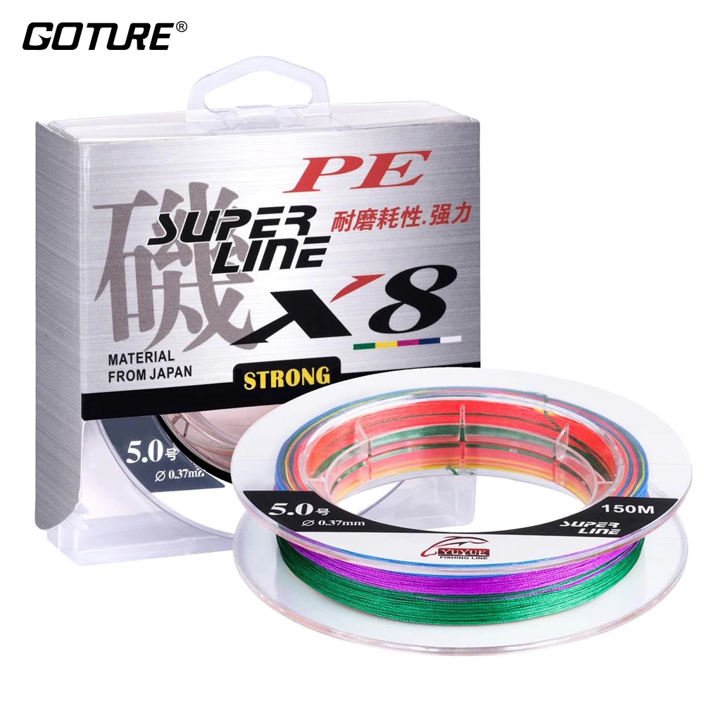 Goture Super Line X8 150M línea de pesca multifilamento 8 líneas trenzadas PE trenzadas 29-76LB para pesca de carpa pesca