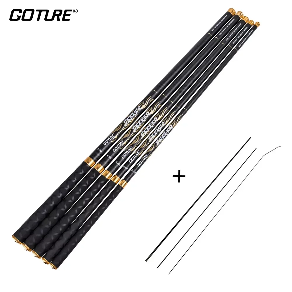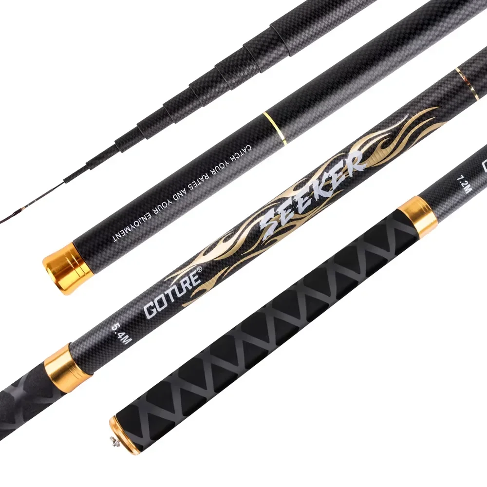 Goture SEEKER 3,6 m-7,2 m caña de pescar telescópica de alta calidad 24T carbono ultraligero caña dura carpa aparejos de pesca de viaje