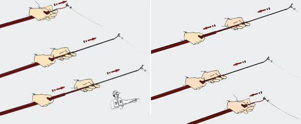 La longitud del hilo entre el flotador y la punta del poste puede variar en longitud para el tipo de pesca que desea realizar.