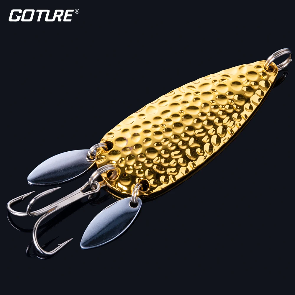 Goture 1 señuelo de pesca cuchara de Metal Spinnerbait cebos artificiales duros de doble rotación 24g señuelo giratorio de lentejuelas para Lucio lubina truchaCaracterística del señuelo de pesca Spinnerbait:Tipo: cebos giratorios dobles.Color: oro, plataMaterial del cuerpo: aleación de zincPeso del cebo único: 24 g/0,85 ozLongitud del cebo único: 7 cm/2,76 pulgadasPaquete de cebo único: bolsa OPPAnzuelo: 1/0# Gancho triple de acero con alto contenido de carbonoPeces objetivo: para peces grandes, como lucio, trucha, lubina, perca, etc.Adecuado para: agua dulce salada