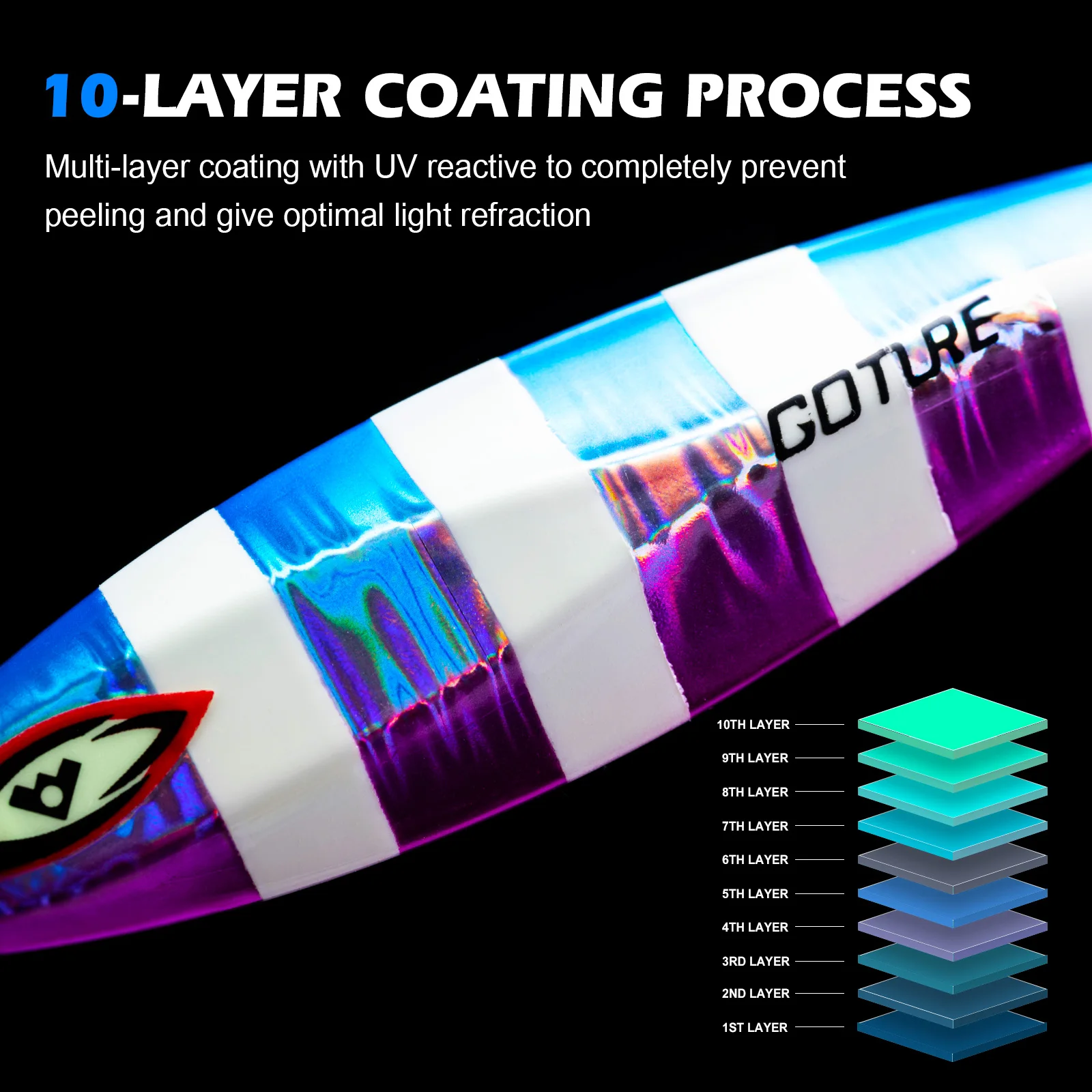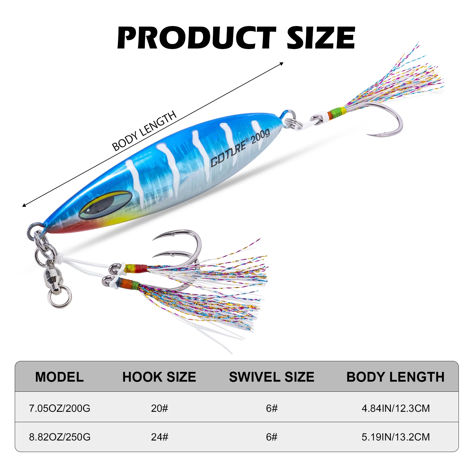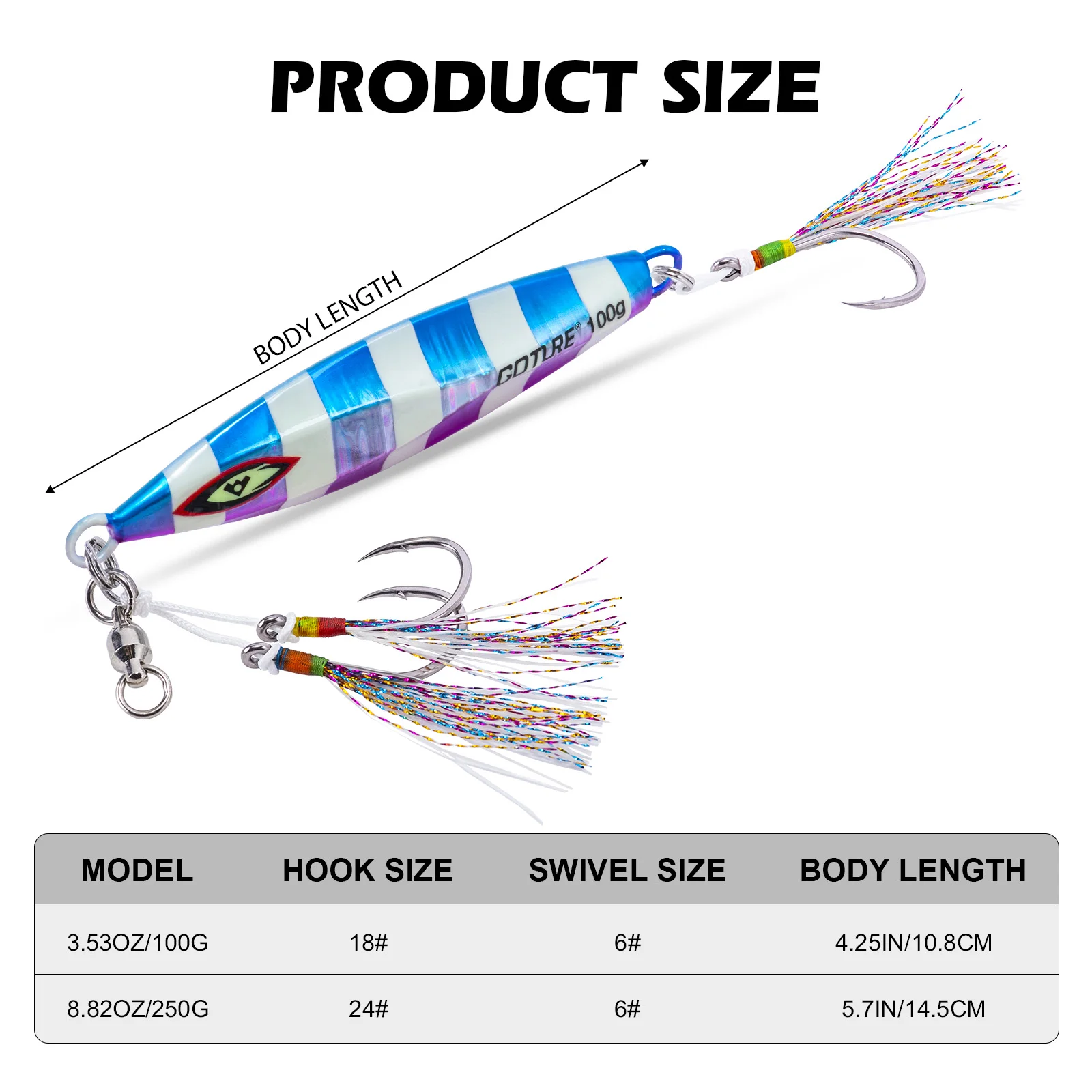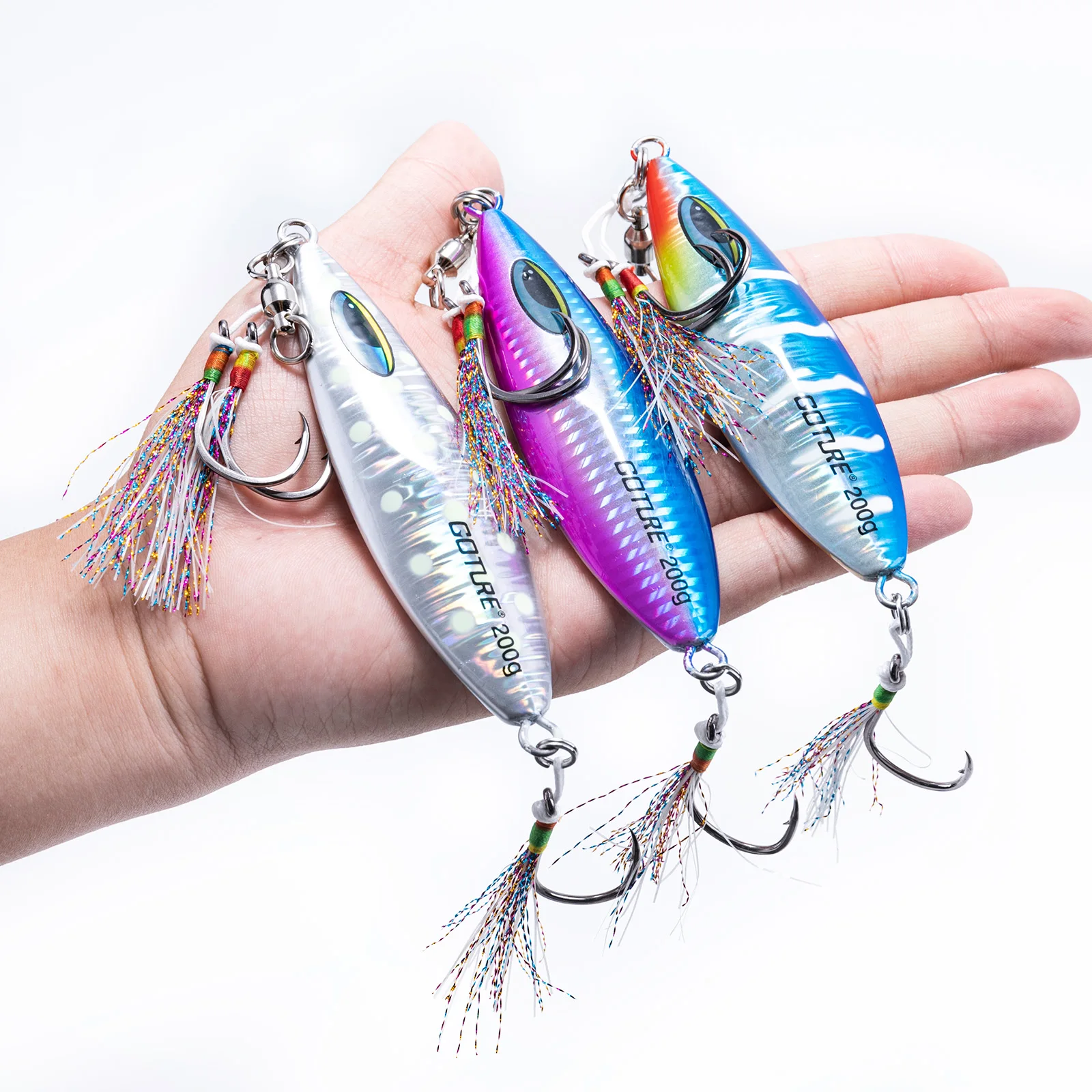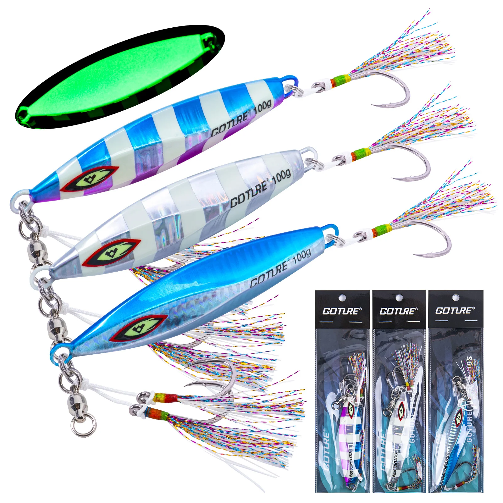 Goture-señuelo de pesca de Jigging lento, 100g, 200g, 250g, placa de hierro, Crankbait, cuchara de Jigging, señuelo que brilla en agua salada, cebo duro de mar