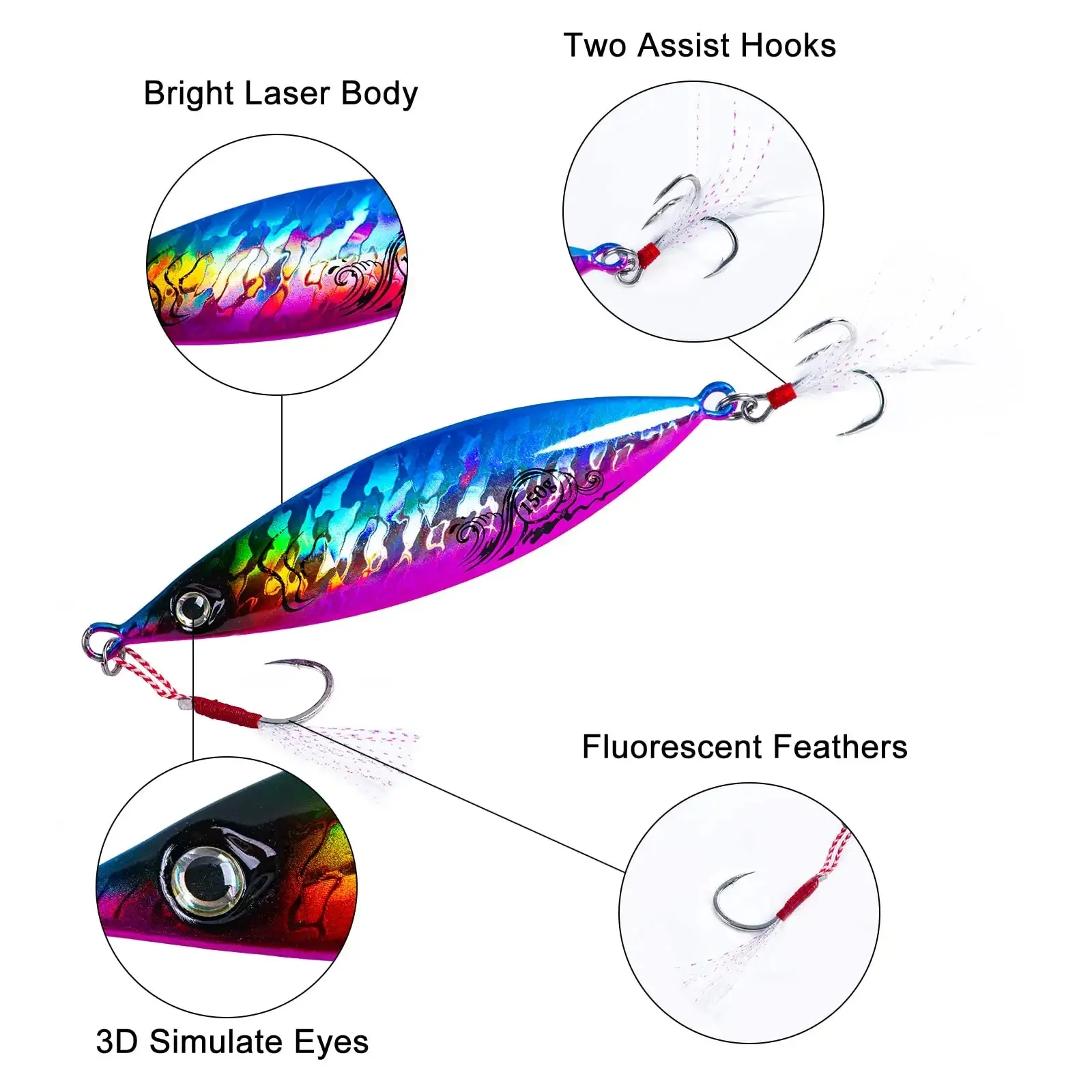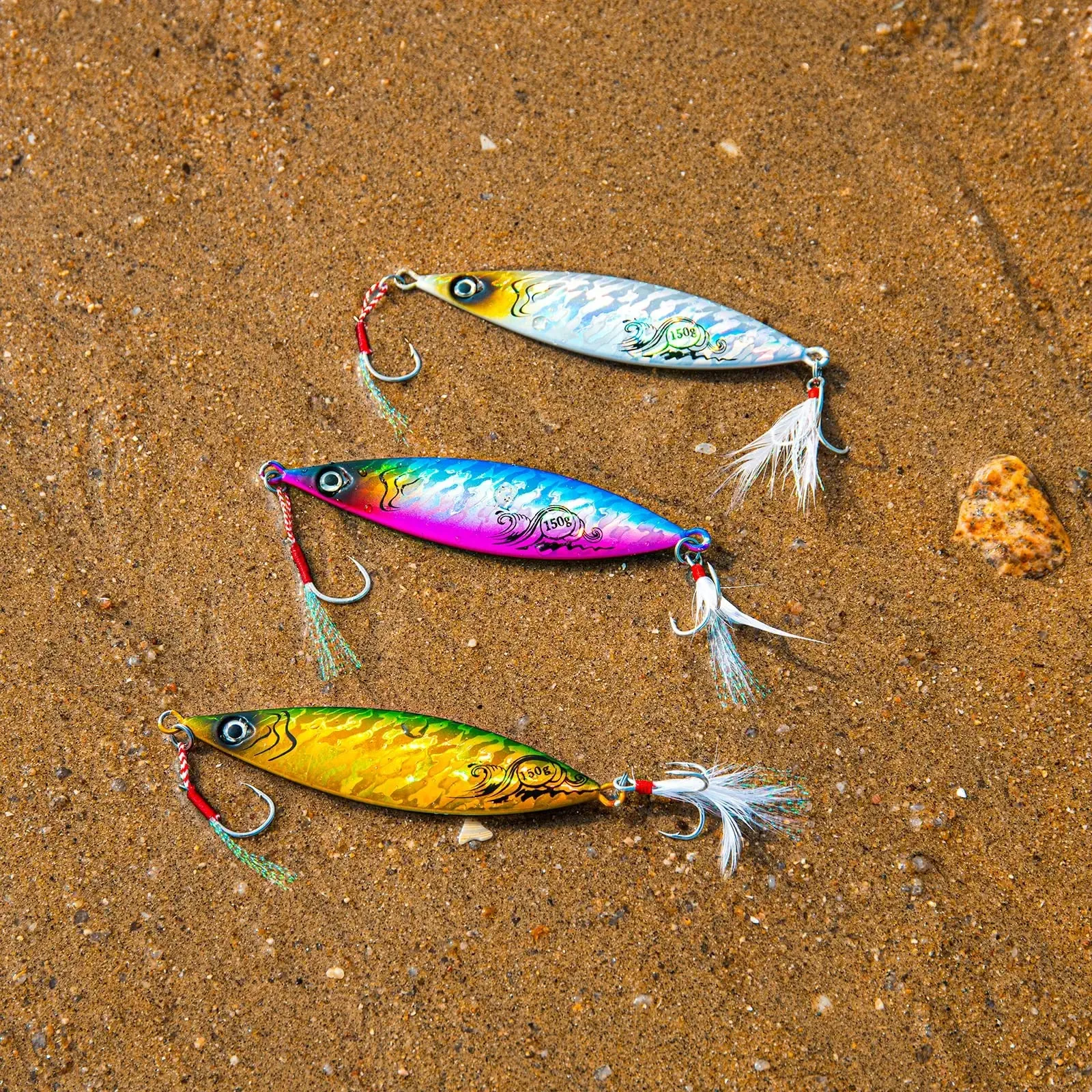 Goture-señuelo de pesca de Jigging lento de Metal, 3 piezas, 80g, 100g, 150g, 200g, fundición a tierra, cebo Artificial para agua salada, atún, Kingfish, lubina