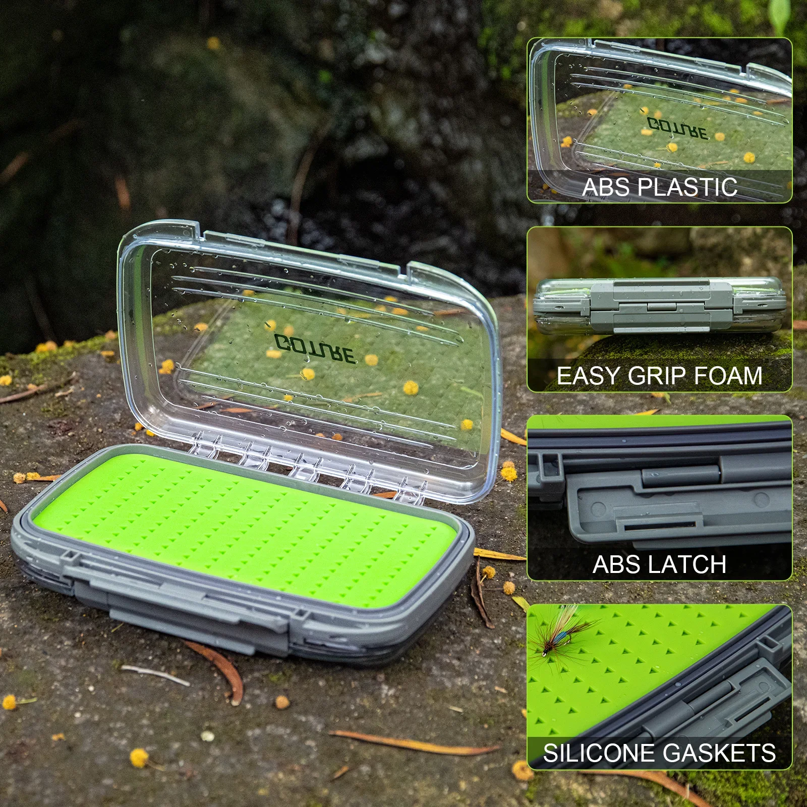 Goture-señuelo de pesca con mosca impermeable, caja de almacenamiento para moscas y trucha, contenedor, señuelo para peces, caja portátil para pesca con mosca
