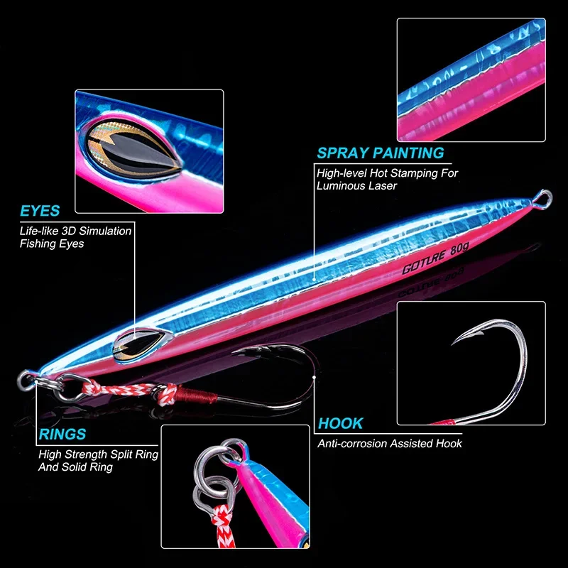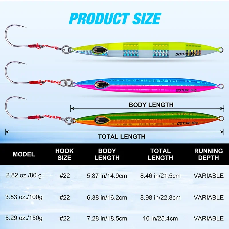 Goture-señuelo de pesca de plantilla de Metal, cebo duro para arrastre de lubina, aparejos de pesca de trucha, Jigging, señuelos de agua salada, 90g-163,4g, 1 ud.