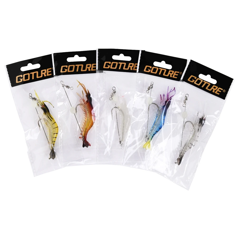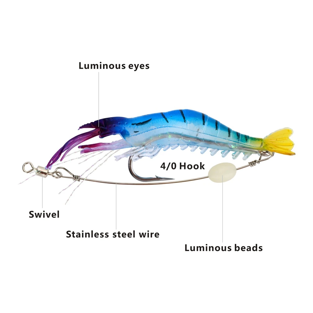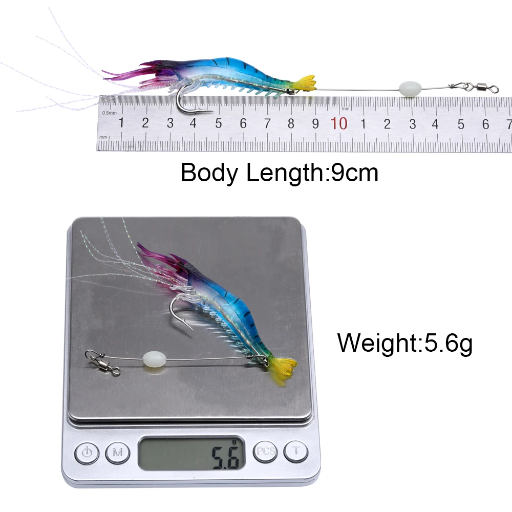 Goture-señuelo de pesca suave, cebo Artificial luminoso de silicona para camarones, 5,6g, 9cm, aparejos de pesca de lubina