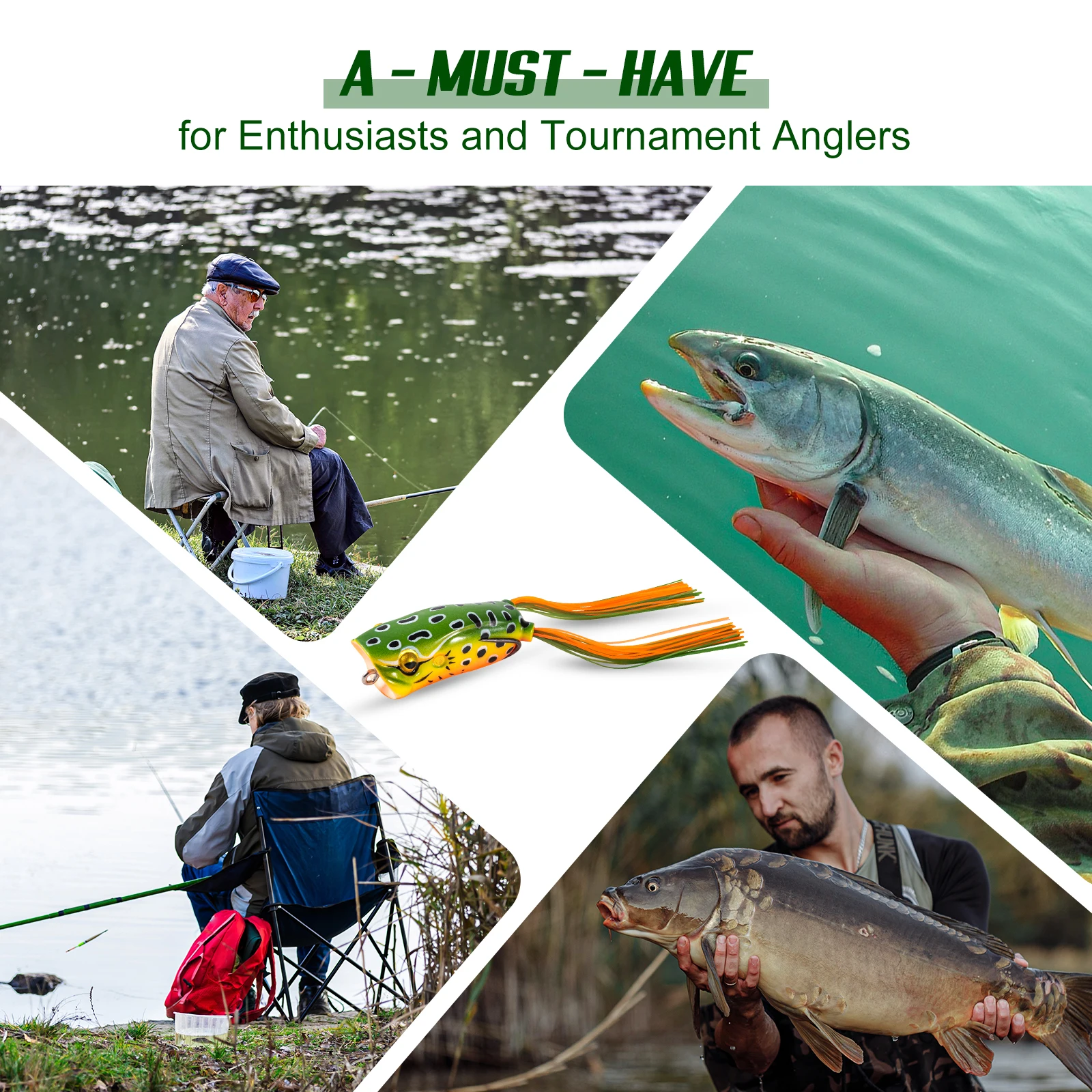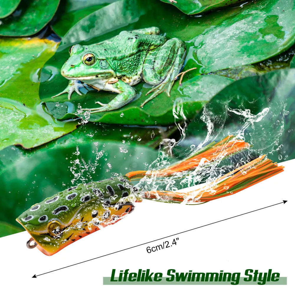 🐸【Cuerpo de rana hueca】 Los señuelos de rana para la pesca de lubina hacen que la acción de caminar del cebo de Rana en la superficie del agua sea más suave y ligera.