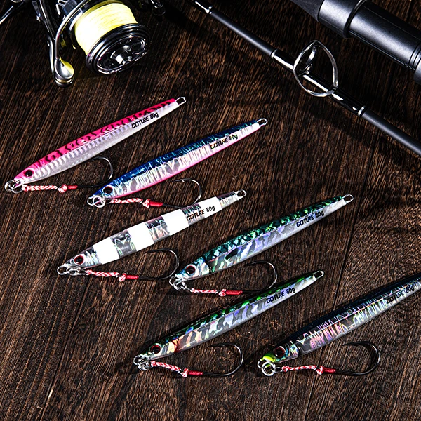 Goture-señuelo de Jigging de velocidad de 60g-150g, Señuelos de pesca de mar de hundimiento luminosos, Jig de Metal Vertical de agua salada, anzuelo de asistencia única Jerkbait