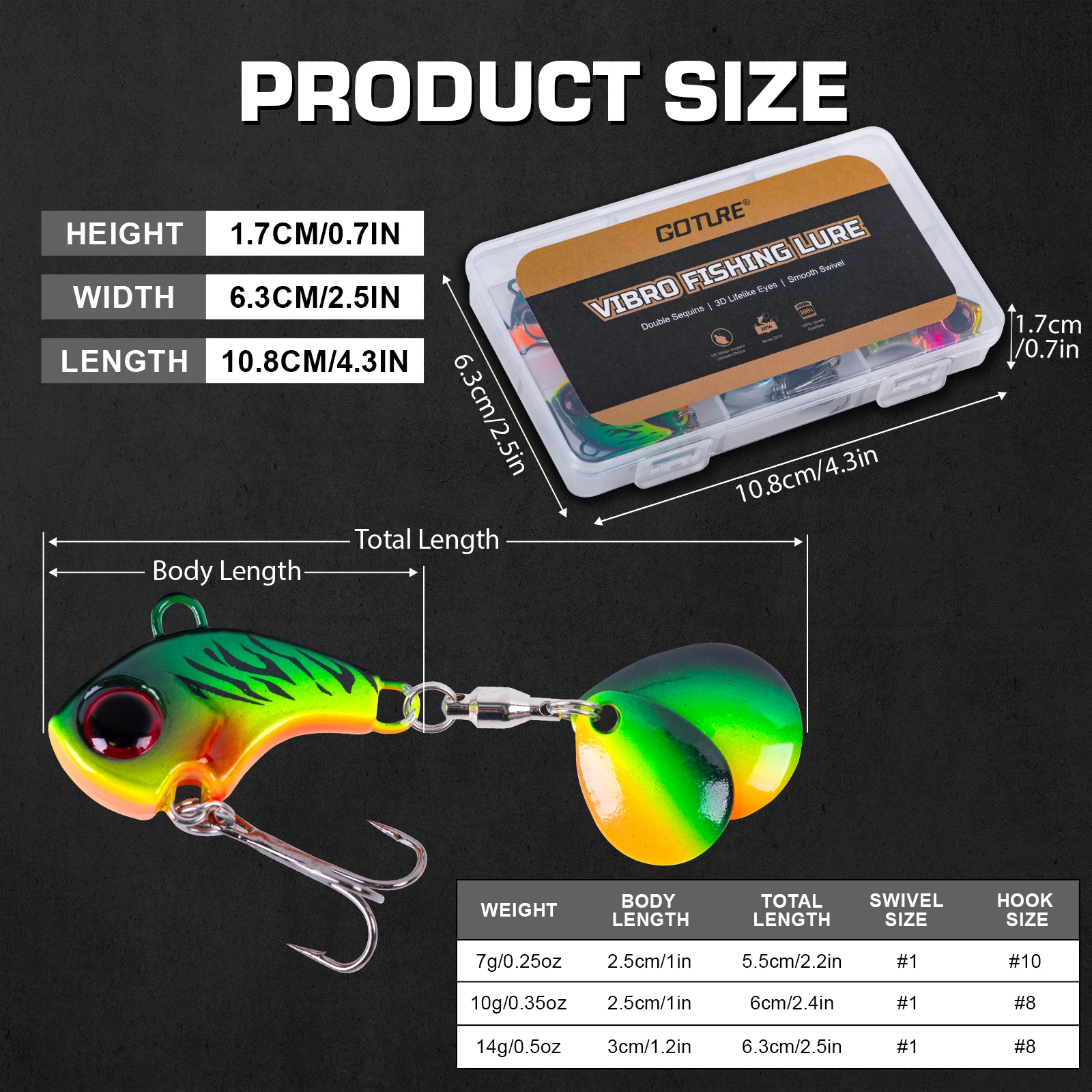 Goture-señuelo tipo cuchara Vib de Metal, 7-14g, 4-6 unids/caja, anzuelos afilados, plantillas para pesca de trucha, Wobbler, cebos duros, aparejos artificiales, accesorios para peces