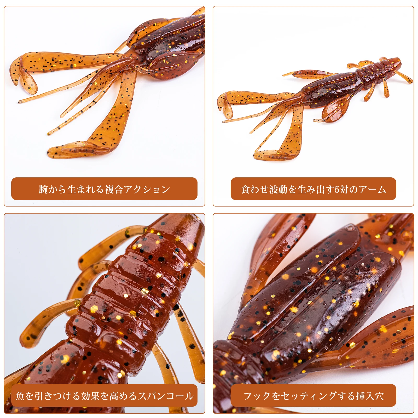 1. El Camarón ágil es una imitación de cangrejo de río realista, infundido con aroma a Camarón para un mayor atractivo.