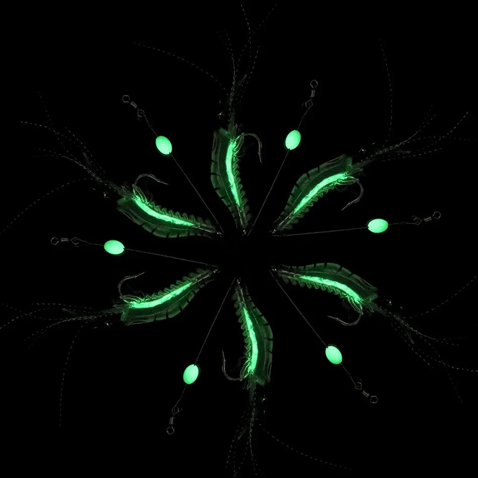 2. Nuestros camarones tienen material luminoso en el interior del cuerpo y ojos únicos, también frijol luminoso en la cola lo hacen adecuado para la pesca nocturna. Sugerencia: Usar luz brillante para iluminar los camarones antes de la pesca nocturna le brindará una excelente experiencia