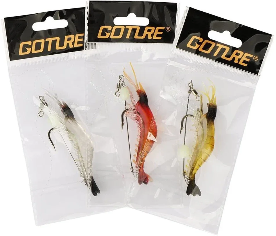 5. PAQUETE: el juego de cebos para camarones Goture Soft Lures viene en un paquete de señuelos de longitud de 3,54 pulgadas y peso de 0,2 Oz que se puede utilizar para una variedad de especies. Total de 3 piezas.