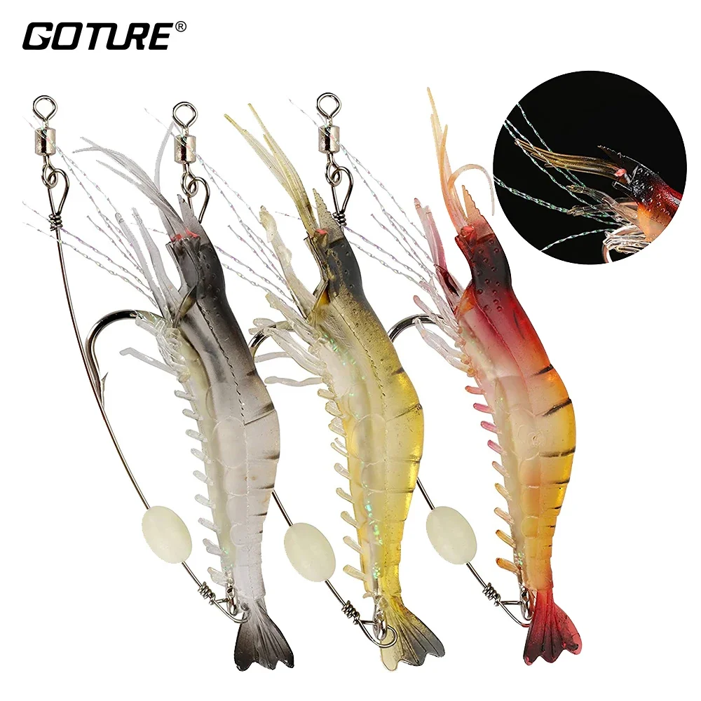 3. El juego de cebo de camarón Goture Soft Lures tiene un anzuelo de púas súper afilado oculto que mejora la velocidad de los peces, el alambre de acero en la cola puede evitar que los peces feroces muerdan y se rompan