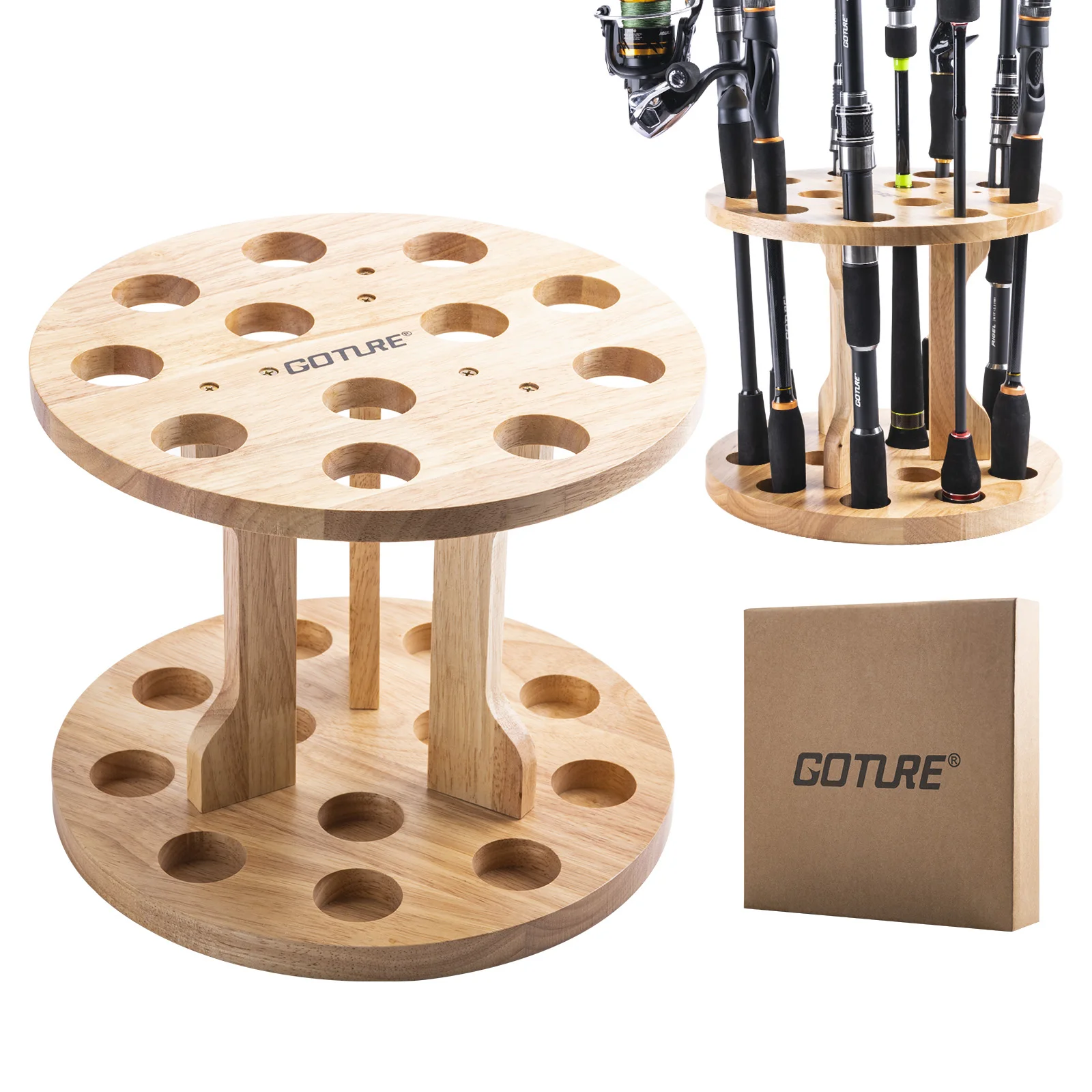 Goture-Soporte para caña de pescar de madera de doble capa duradero, capacidad de almacenamiento de 12 cañas para garaje, soporte de exhibición para caña de pescar, marco fijo
