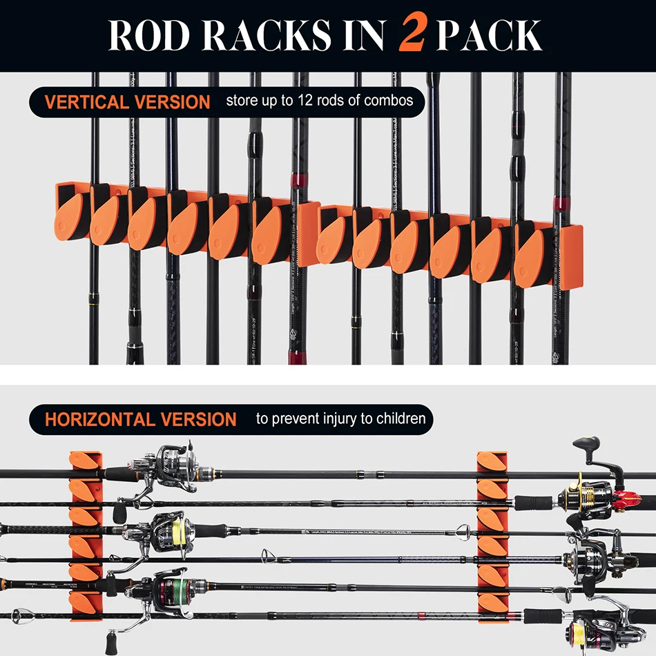 Artículo: 6-Rod Rack Soportes de caña de pescar Material:Nylon,EVA Color: naranja-negro y negro-naranja Tamaño del producto29,7*5,3*3,1 cm Peso tolerable (por caña): 2,2 lb(1kg) Diámetro máximo (por varilla): 0,83 ''(21mm) Nota: cada soporte viene con cuatro juegos de accesorios de tornillo, y hay cuatro pegatinas 3M en la parte posterior del soporte Característica del producto: 1. Utiliza material de nailon de alta resistencia y material EVA antideslizante, resistente y duradero.