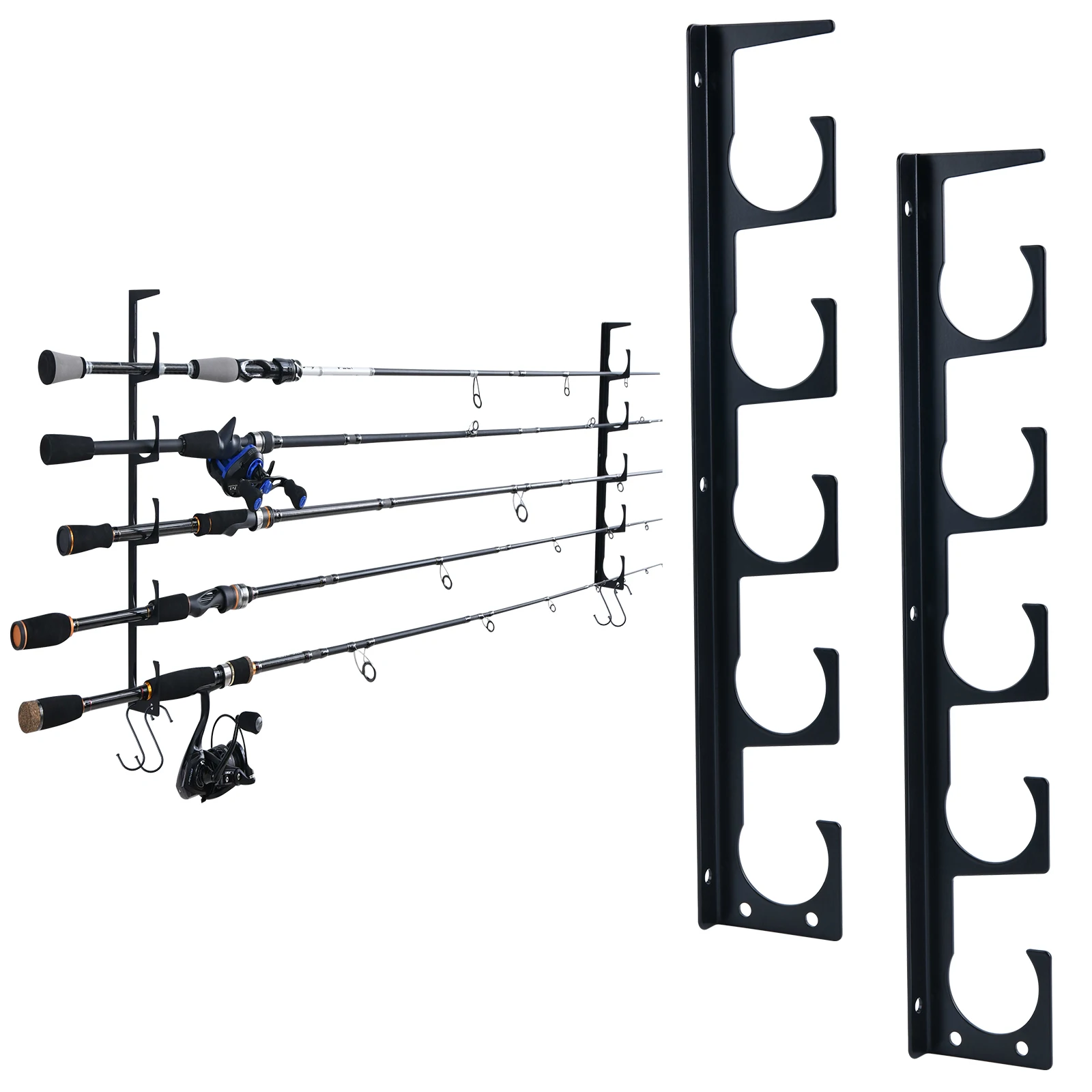 Goture-soporte de Metal para caña de pescar, 5 cañas de hasta 5 cañas horizontales en la pared, protección, estante para caña de almacenamiento, accesorios de almacenamiento de herramientas de pesca