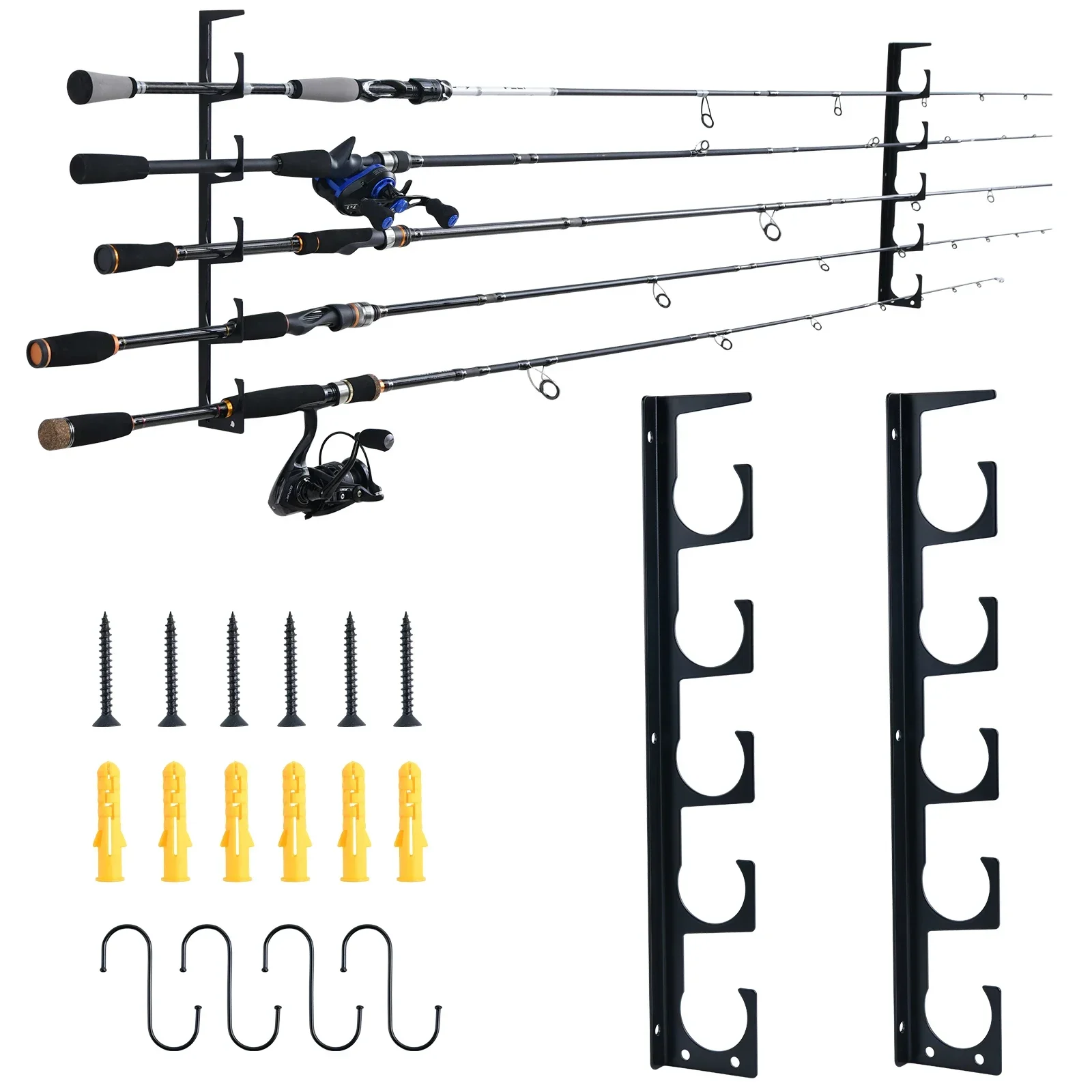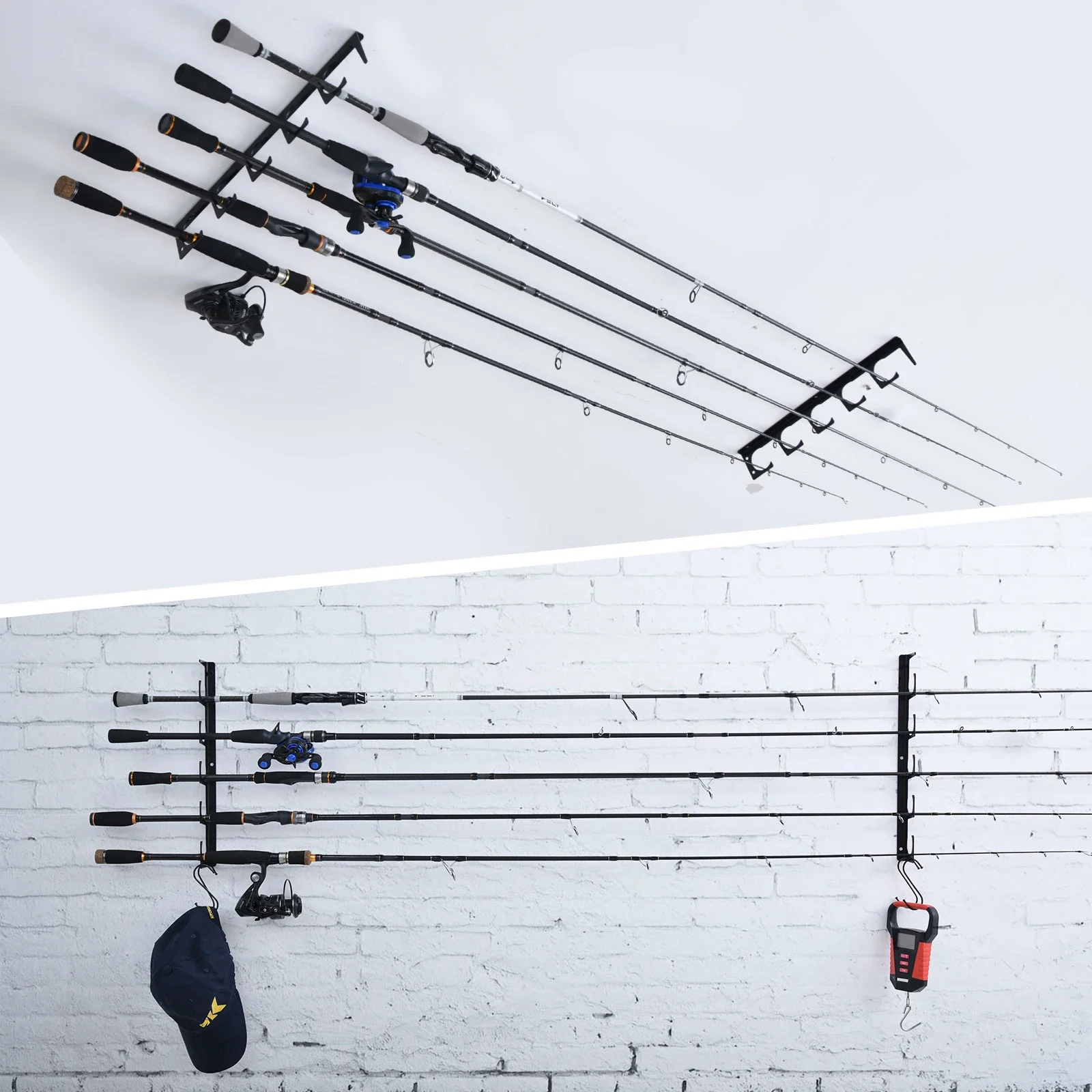 Goture-soporte de Metal para caña de pescar, 5 cañas de pescar, Horizontal en la pared, protección, almacenamiento, estante para caña, accesorios de herramientas de pesca