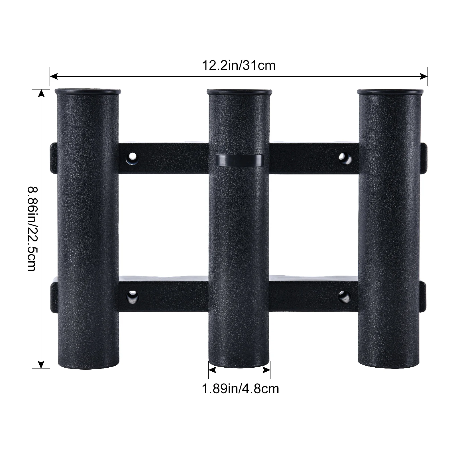 【Materiales de alta calidad】 Los soportes para cañas de pescar están hechos de plástico ABS pesan 307 g/10,83 oz, son livianos y duraderos para agua dulce y salada. 【Fácil de instalar】 Los soportes para varillas vienen con 4 tornillos, que es una instalación sencilla y más estable.Puedes montarlo en una pared, barco, kayak o en cualquier lugar que desees. 【Libera tus manijas】 El diseño de 3 varillas te permite almacenar 3 varillas al mismo tiempo y puedes liberar tus manos para hacer lo que quieras sin esperar. 【Uso seguro】 El grosor del tubo de pared del soporte de pesca es de 2 mm/0,08 pulgadas, el diámetro del tubo de pared es de 4,8 cm/1,89 pulgadas.Lo que puede proteger las cañas de pescar de daños durante el transporte o almacenamiento.Y la longitud del tubo es de 22,5 cm/8,86 pulgadas, evita eficazmente el riesgo de inclinarse o caer la caña de pescar durante el uso. 【Después de la venta】