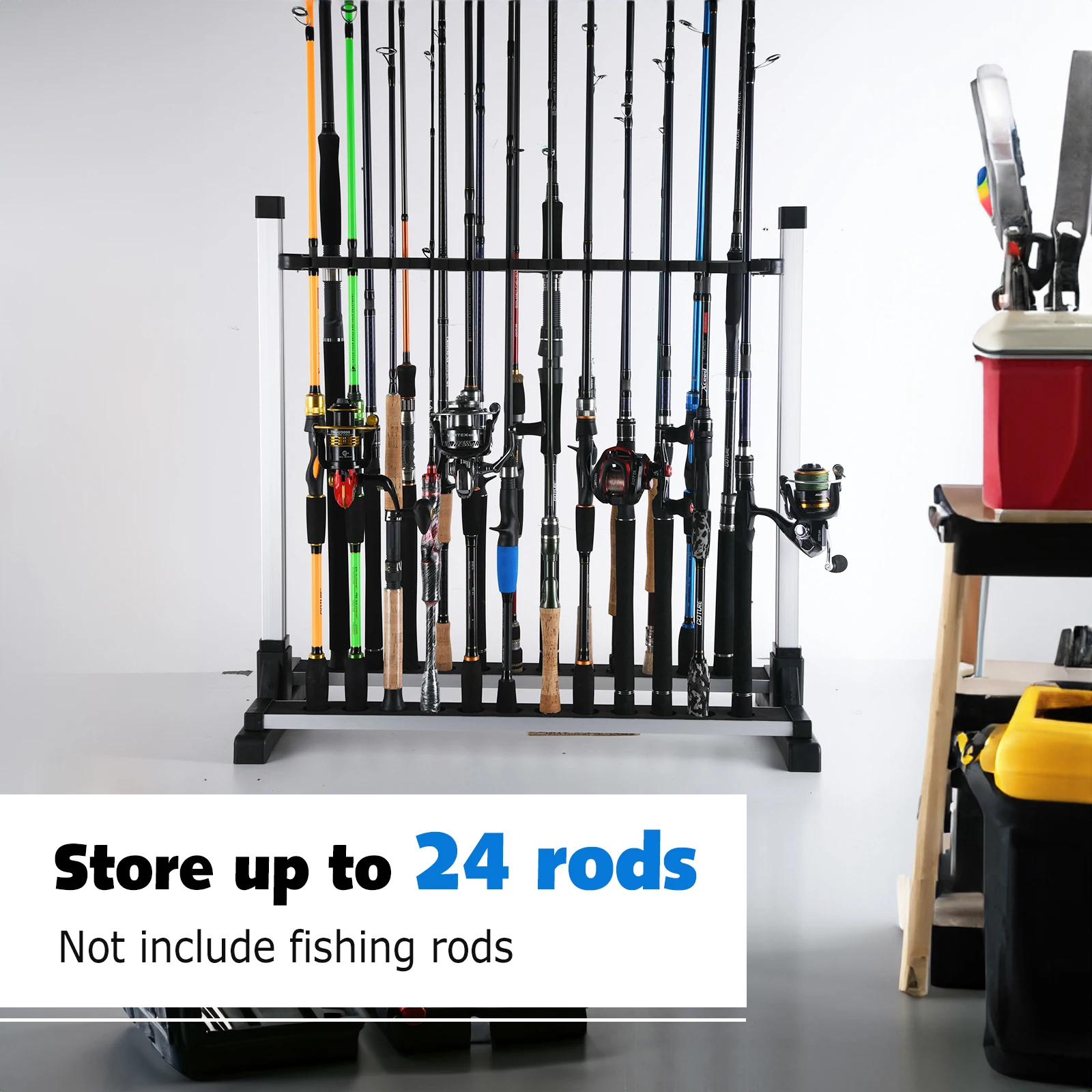 Goture soportes de caña de pescar de gran capacidad, estante de 24 varillas, soporte de poste Vertical para poste de pesca, soporte de exhibición, marco fijo