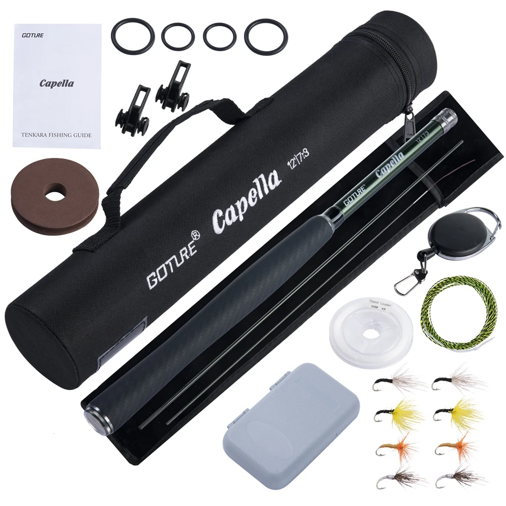 Impresionante conjunto por el precio, bastante completo y con una guía rápida y bien organizada. La caña en sí es bastante buena, con tapas metálicas en ambos extremos. El corcho se siente muy cómodo en la mano. La línea está a la altura de otras que he usado en el pasado, y las moscas son del estilo Kebari, que también he utilizado antes (y sé que funcionarán). Un amigo mío, que solo confía en los equipos de TenkaraBum, quedó impresionado con la oferta de Goture y aceptó adquirir un set después de probar el mío la próxima temporada. :D