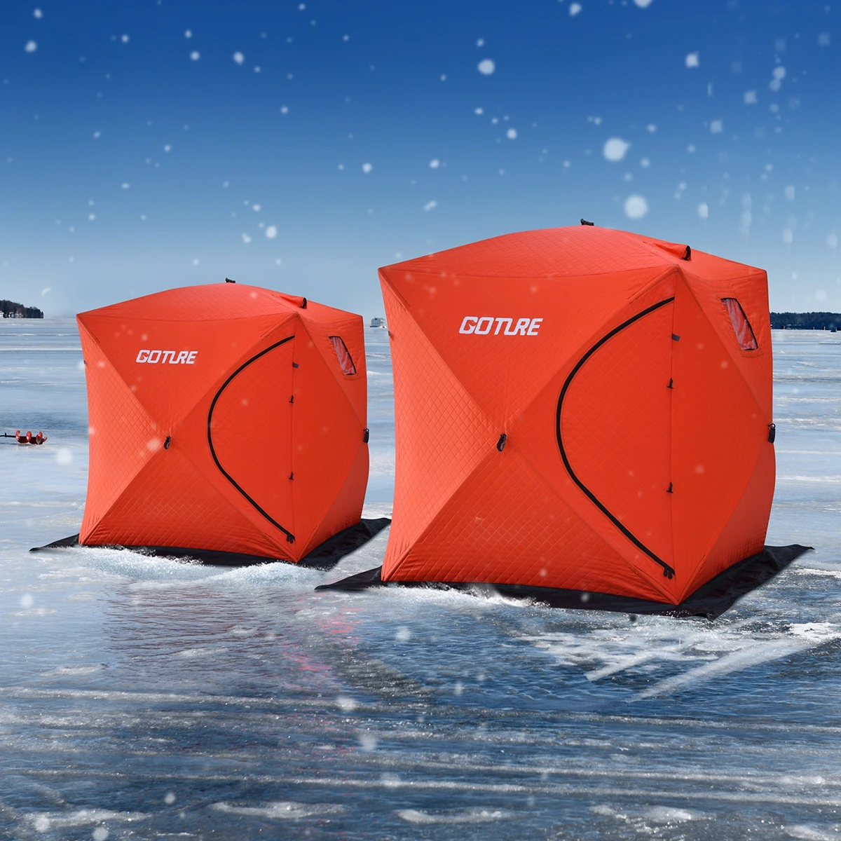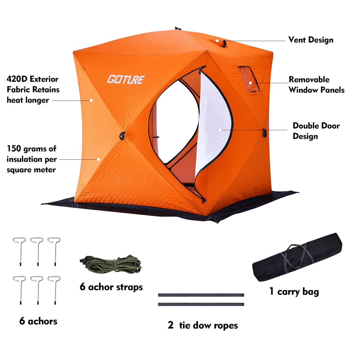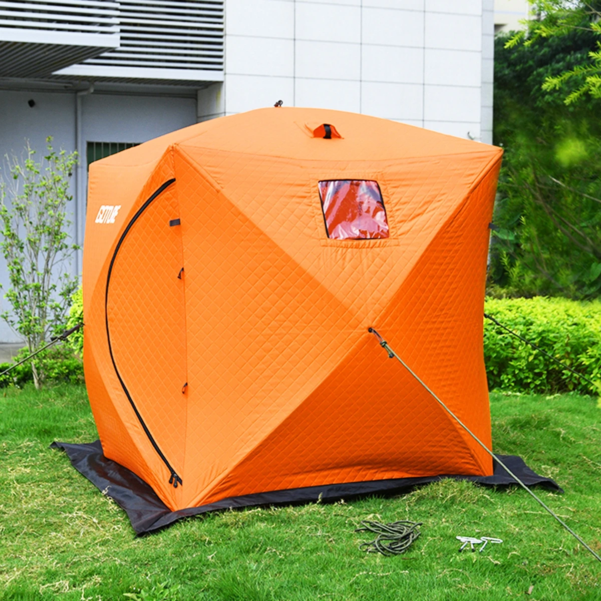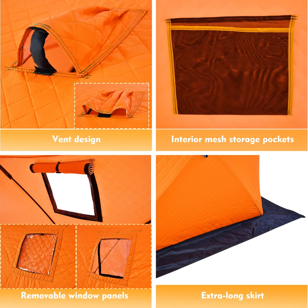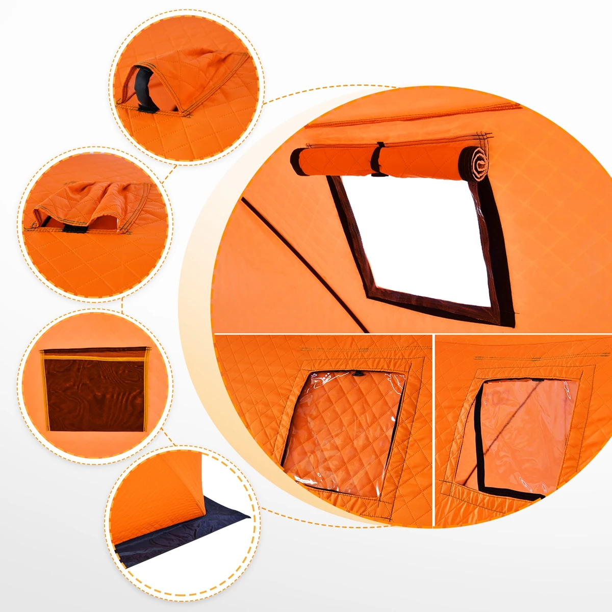 Tienda de hielo aislada a prueba de viento para 3-4 personas, refugio de pesca en hielo, tienda de pesca de invierno con 2 puertas