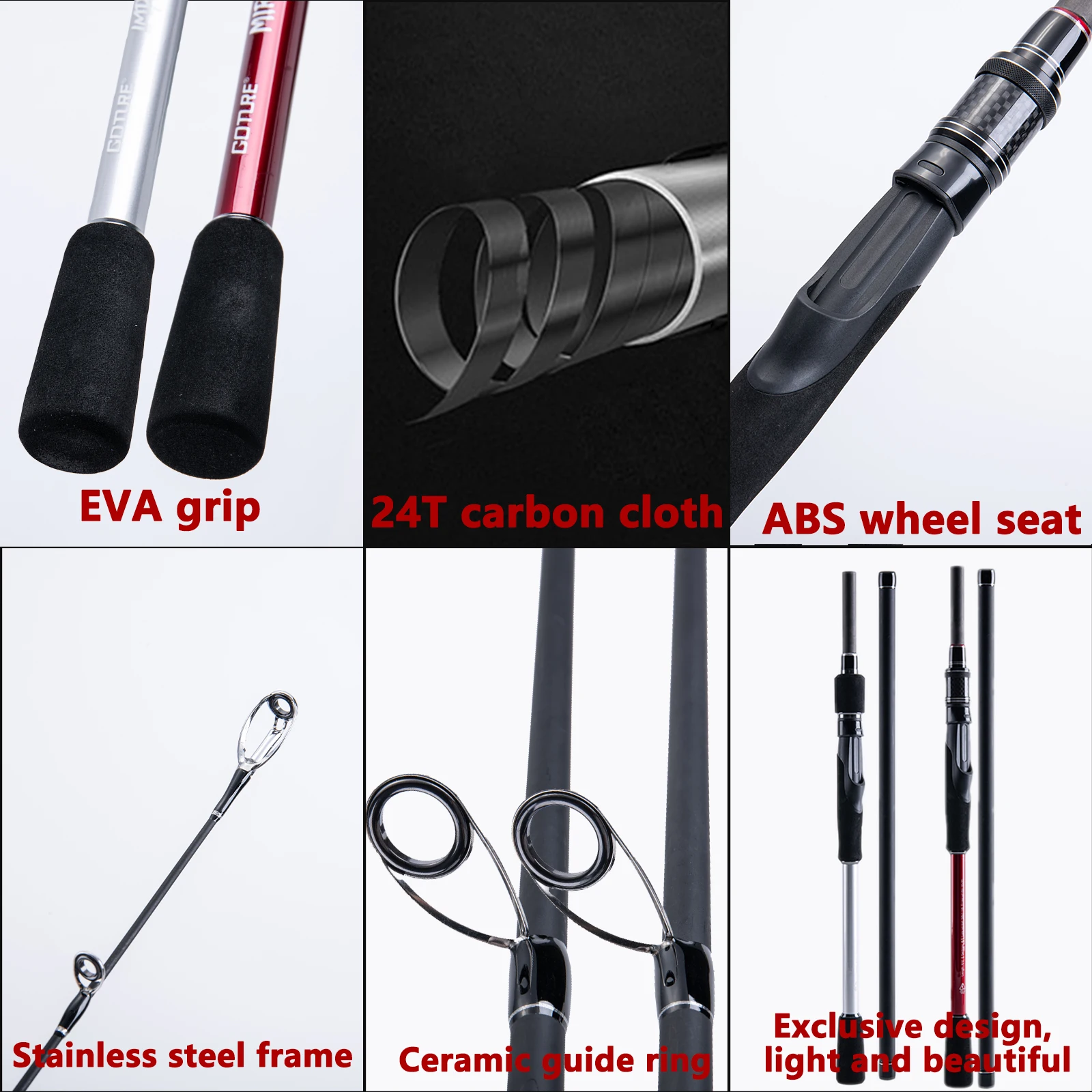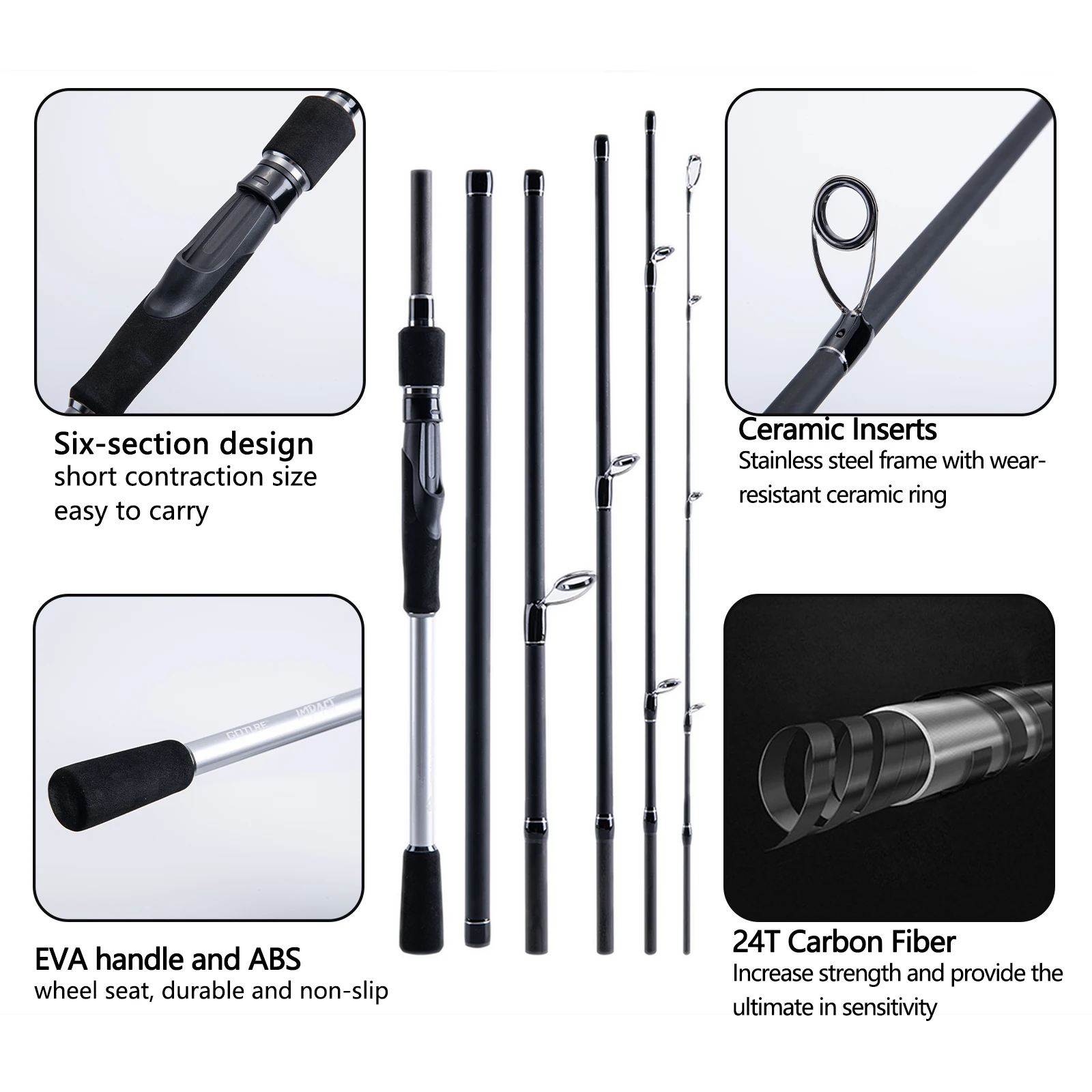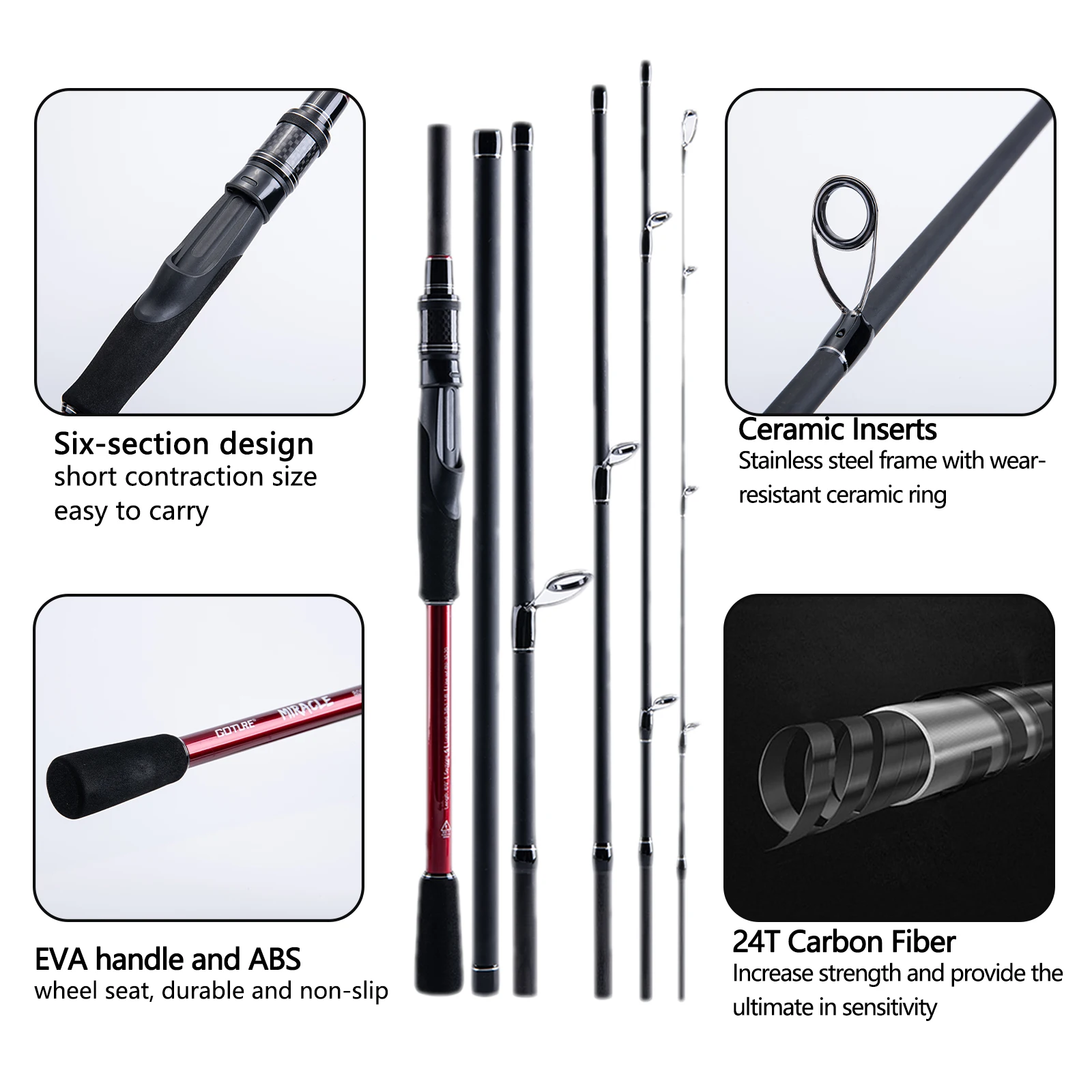 Goture-varilla giratoria de fibra de carbono 24T, accesorio para pescar carpa, 1,98 M, 2,1 M, 2,4 M, 2,7 M, 5/6 secciones, poste de señuelo de Bajo ultraligero rápido, M/MH